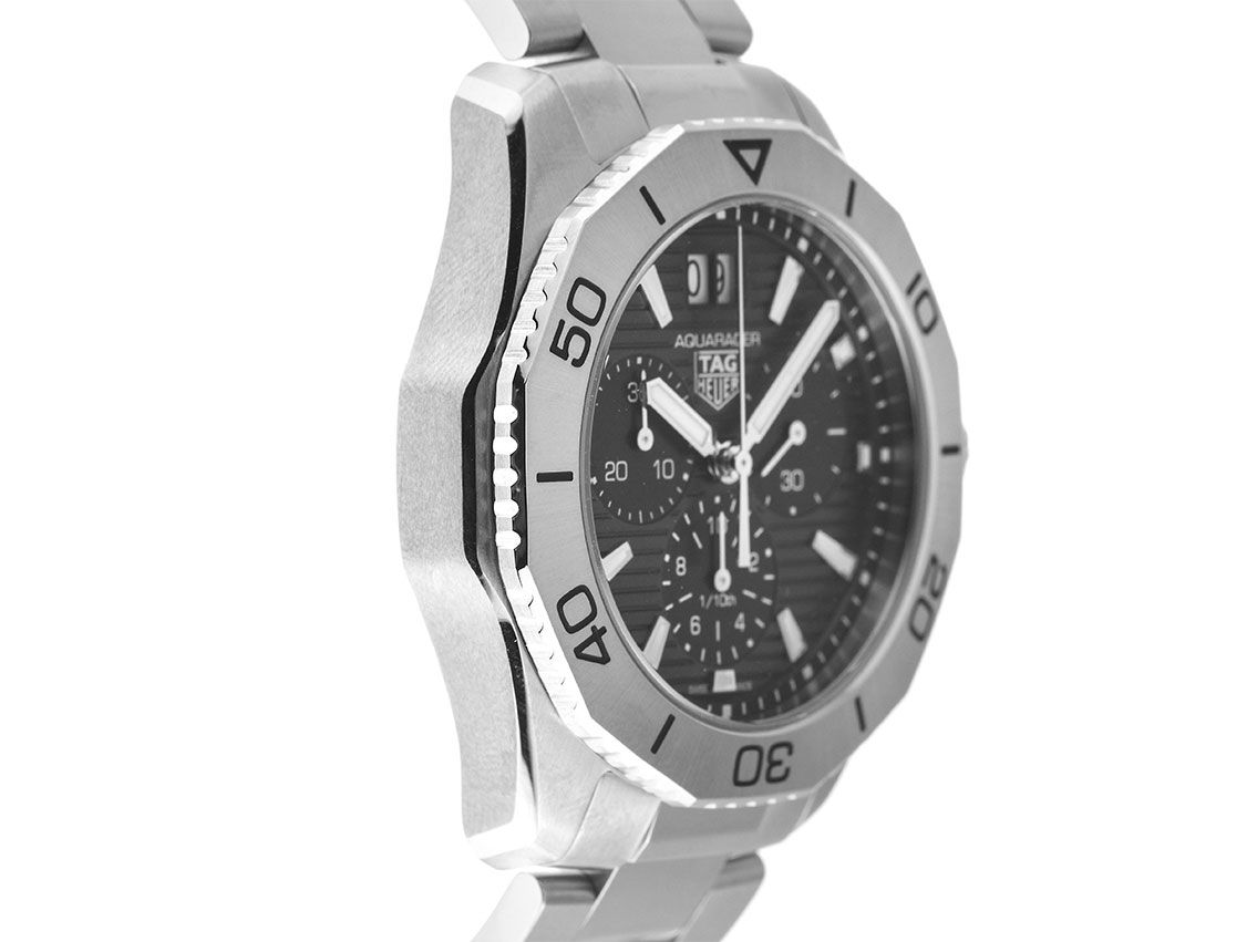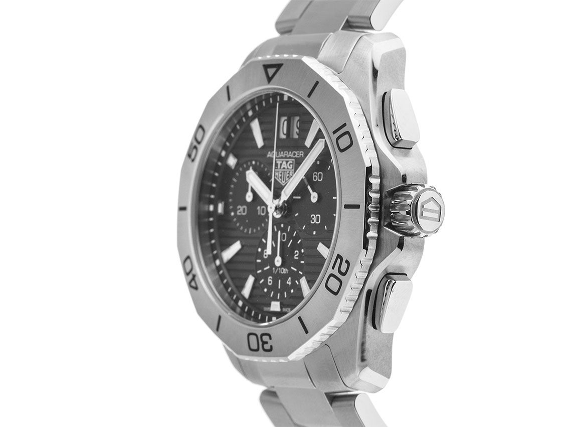 Tag Heuer Aquaracer Professional 200 Date Stahl Quarz Chronograph Armband StahlGehäuse Edelstahl poliert und satiniert, Gehäusedurchmesser ohne Krone 40mm, Gehäusehöhe 12,4mm. Lünette Edelstahl satiniert mit 60-Minuten Skala, einseitig drehbar. Armband Edelstahl poliert und satiniert, Sicherheitsfaltschließe Edelstahl mit Hersteller-Logo. Zifferblatt schwarz mit Streifendekor, aufgesetzten Edelstahl Leuchtindexen und polierten Edelstahl Leuchtzeigern. Uhrwerk quarzgesteuert. Anzeige von Stunde und Minute über Zeiger aus der Mitte, kleine Sekunde mit Sekundenstopp zur sekundengenauen Einstellung der Uhrzeit bei 3 Uhr, Großdatumsanzeige mit Schnellverstellung bei 12 Uhr. Saphirglas kratzfest. Krone verschraubbar mit Flankenschutz und Hersteller-Logo. Boden Edelstahl graviert. Gewicht der Uhr inklusive Armband 160g, Länge des Armbandes inkl. Gehäuse 195mm. Wasserdicht bis 20 ATM. Referenznummer: CBP1110.BA0627, ID: ST116038160426H-3100, Artikelnummer: 10000085410. Original Tag Heuer Box mit Umkarton und Garantie Papiere von 2026 sowie Beschreibung, Full Set. Ungetragen. Lieferzeit sofort.