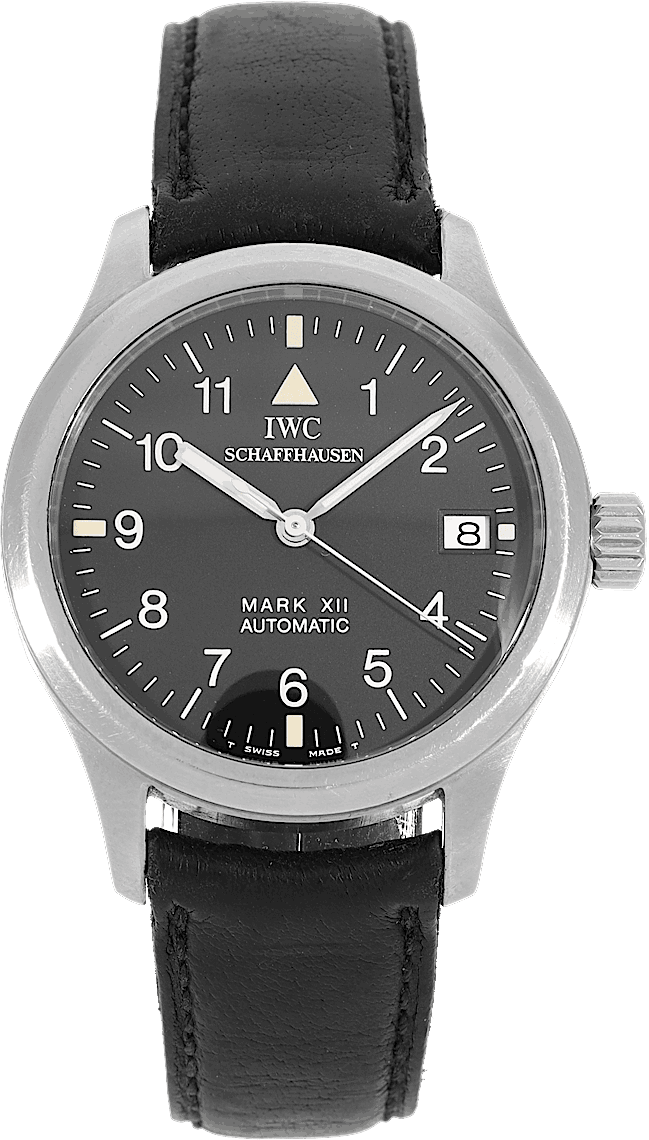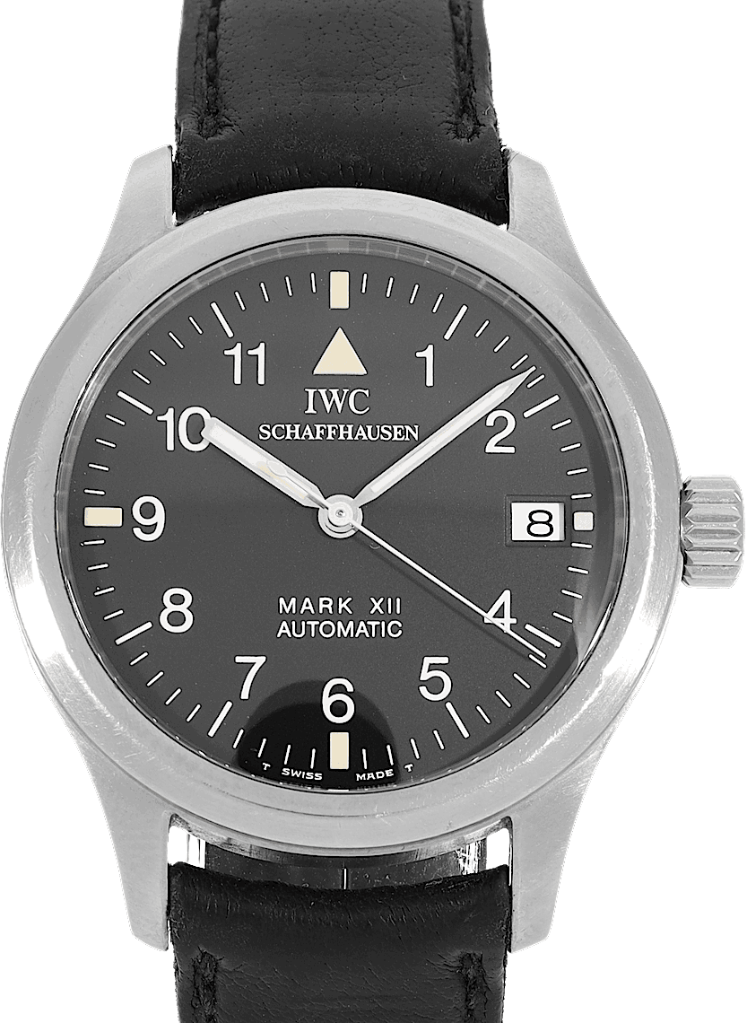 IWC Mark XII, Reference: IW3241, Gender: Male, Size: 36mm, Dial color: Black, Strap material: Calf Leather, Movement: Automatic, Condition: Previously worn with some signs of usage. The movement is flawless and the case has been cleaned. watch tested to ensure full functionality. An inspection by our certified watchmakers guarantees its authenticity., Documents: Chronext Certificate
