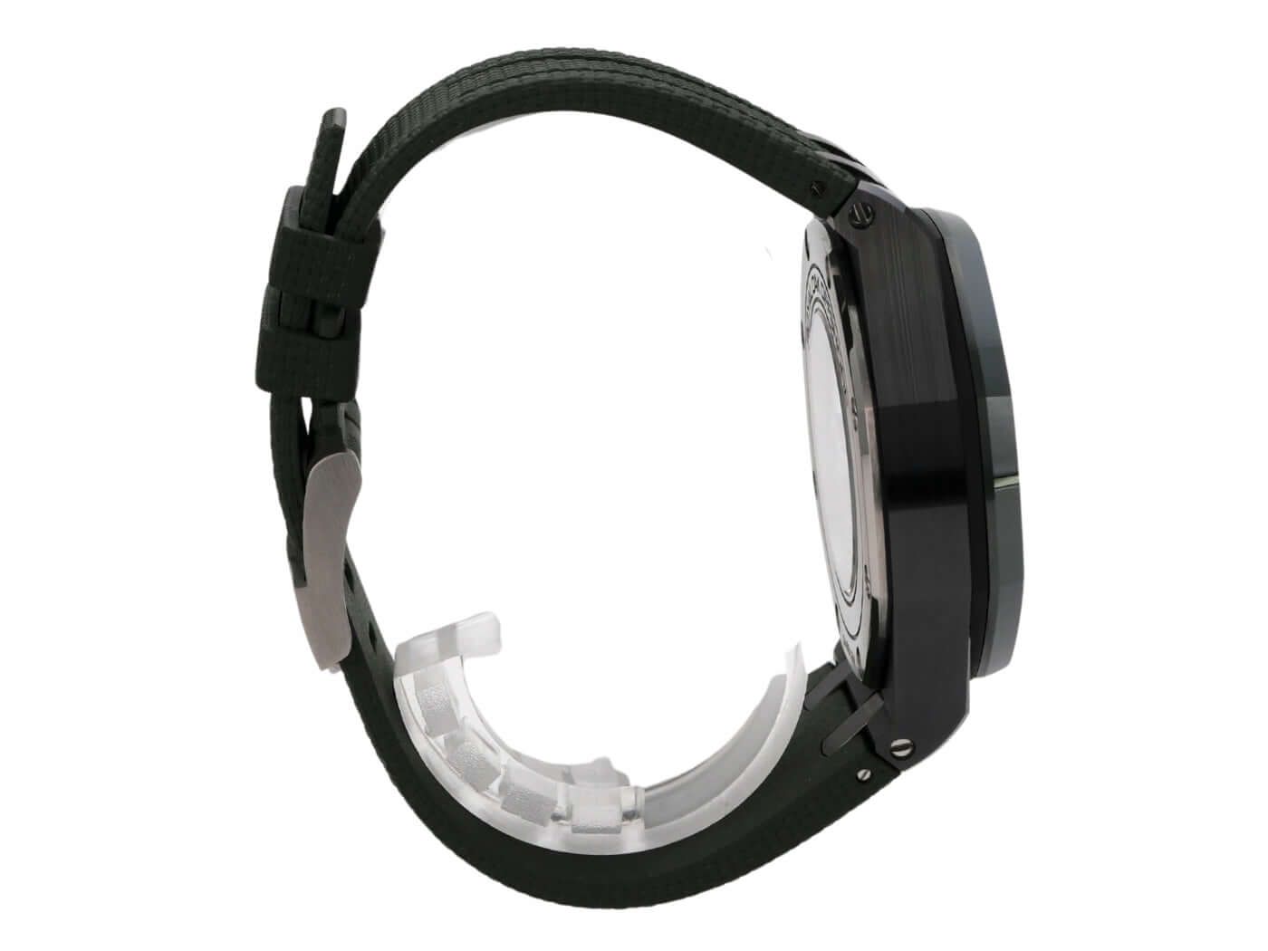 Cassa in ceramica, diametro della cassa 44 mm, altezza della cassa 14,4 mm, lunetta in ceramica verde avvitata, cinturino in gomma verde con fibbia ad ardiglione in titanio, quadrante verde con numeri arabi luminosi e indici luminosi, movimento automatico, calibro di manifattura 3126 / 3840 con 59 rubini, frequenza 21.600 vph, riserva di carica di circa 50 ore, indicazione della data, vetro zaffiro antiriflesso, fondello in zaffiro avvitato e inciso, impermeabile fino a 10 bar.
