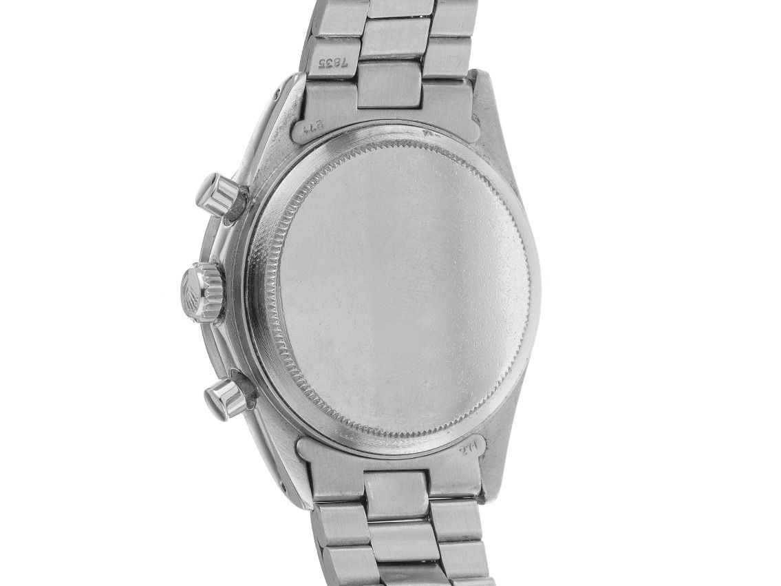 Rolex Daytona Paul Newman Stahl Handaufzug Chronograph Armband OysterGehäuse Edelstahl poliert und satiniert, Gehäusedurchmesser ohne Krone 36mm, Gehäusehöhe 13,4mm. Lünette Edelstahl poliert und graviert mit Tachymeterskala. Armband Oyster Edelstahl gefaltet und satiniert, Faltschließe Edelstahl mit Hersteller-Logo, (Anstoßnummer: 271, Oysterband Nummer: 7835). Zifferblatt schwarz / weiß mit roter Minuterie, aufgesetzten schwarzen Indexen und polierten Zeigern, (2 liner "Rolex Cosmograph"). Uhrwerk Handaufzug, Chronograph, Rolex Kaliber 727 mit 17 Edelsteinen. Anzeige von Stunde und Minute über Zeiger aus der Mitte, kleine Sekunde mit Sekundenstopp zur sekundengenauen Einstellung der Uhrzeit bei 9 Uhr. Plexiglas. Krone verschraubbar mit Hersteller-Logo. Boden Edelstahl verschraubt. Gewicht der Uhr inklusive Armband 80g, Länge des Armbandes inklusive Gehäuse 190mm. Referenznummer: 6239, Gehäusenummer: 1958XXX, Baujahr: 1968, ID: KB18354400000426H-360000, Artikelnummer: 10000085425. Mit Gangkontrolle und Reinigung von April 2026. Original Rolex Box und Garantie Papiere von Februar 1972, LC 100 / Germany EU sowie Beschreibung, Übersetzungsheft, Rolex Chronometer-Siegel, Tag, Reparatur und Wartung Vita sowie Watchregister Auszug von April 2026, The Watch Register Zertifikat / ohne Eintrag (Internationale Datenbank für verlorene oder gestohlene Uhren). Superschnäppchen, Kapitalanlage mit Wertsteigerungspotential, extrem seltenes Sammlerstück. Sehr guter original Zustand, kann auf Wunsch kostenlos aufgearbeitet werden. Lieferzeit sofort.