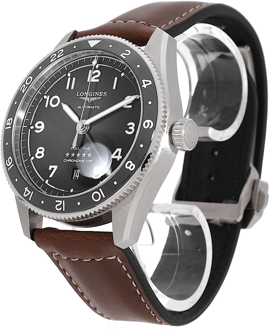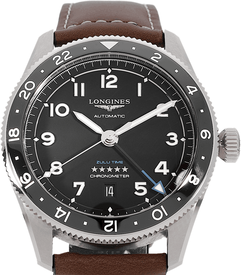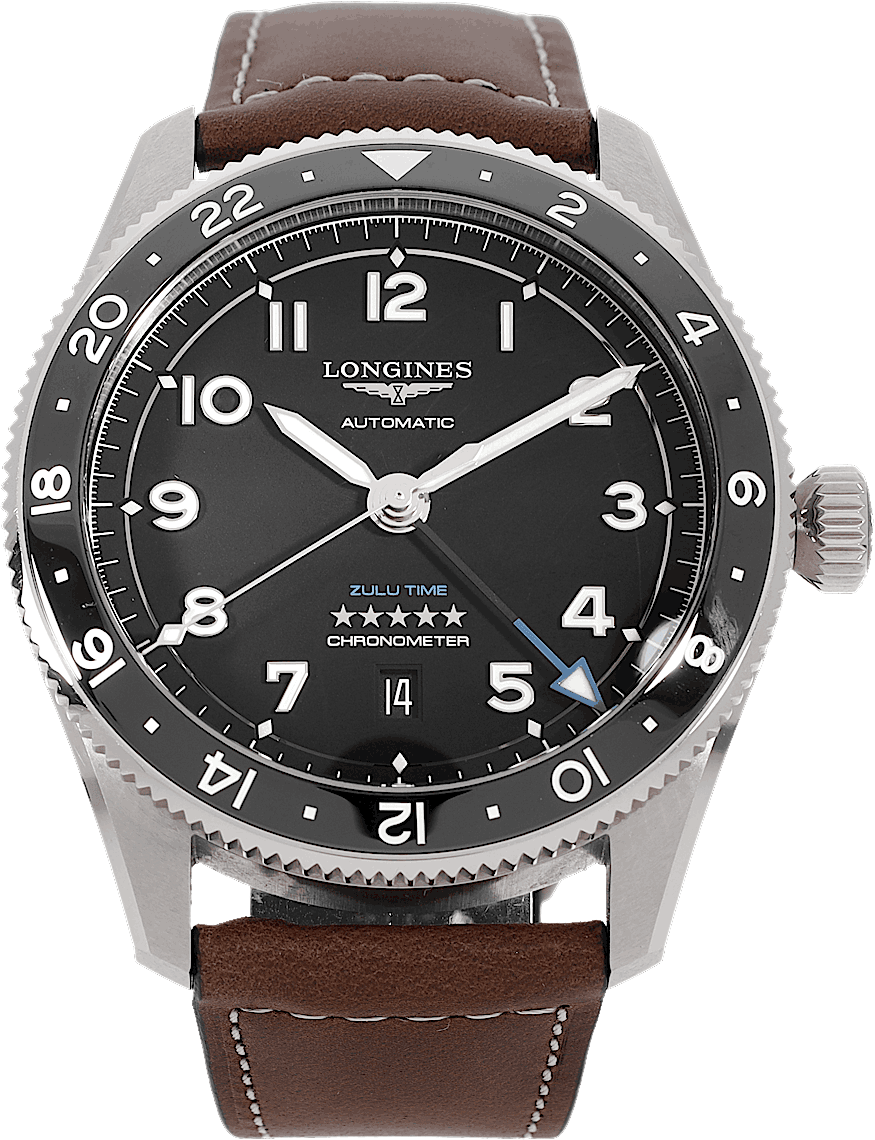 Longines Spirit Zulu Time, Reference: L3.812.4.53.2, Gender: Male, Size: 42mm, Dial color: Black, Strap material: Calf Leather, Movement: Automatic, Year: 2025, Condition: New and unworn. An inspection by our certified watchmakers guarantees authenticity., Documents: Chronext Certificate