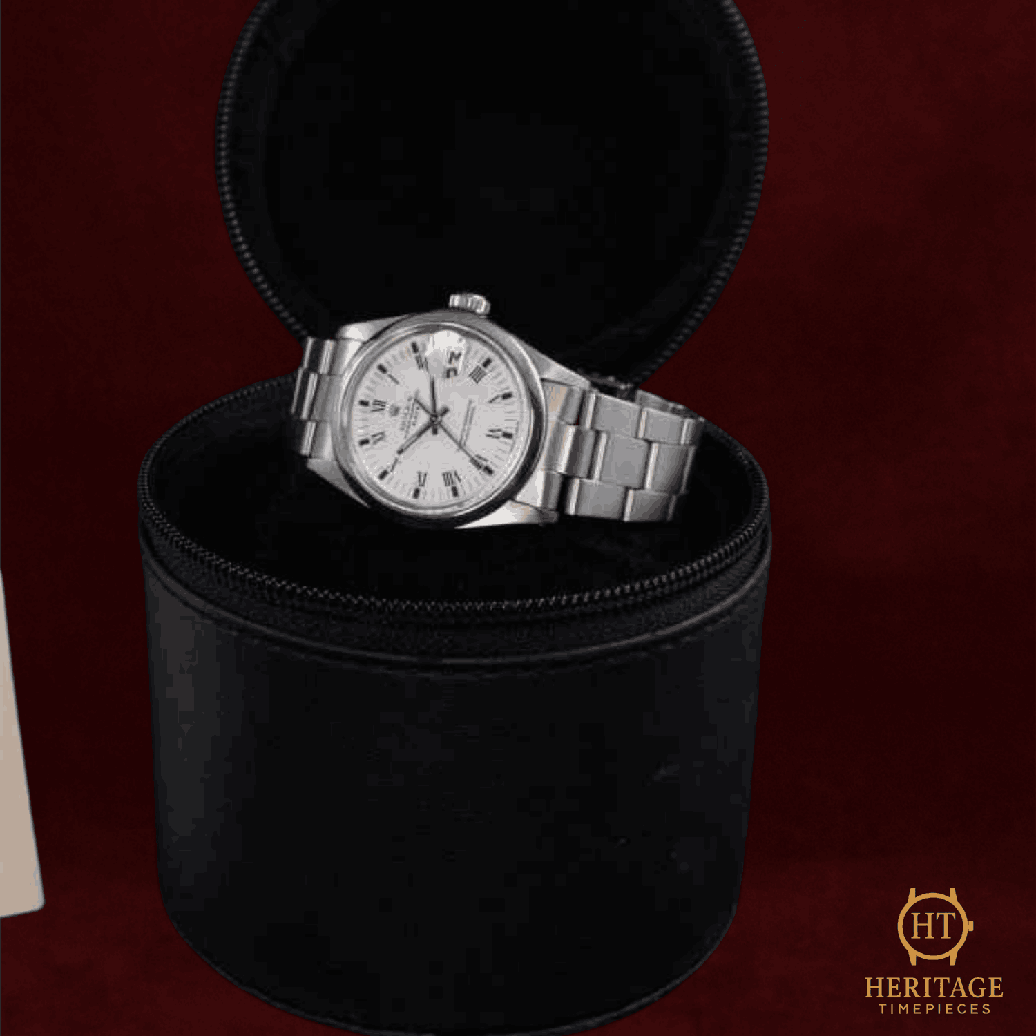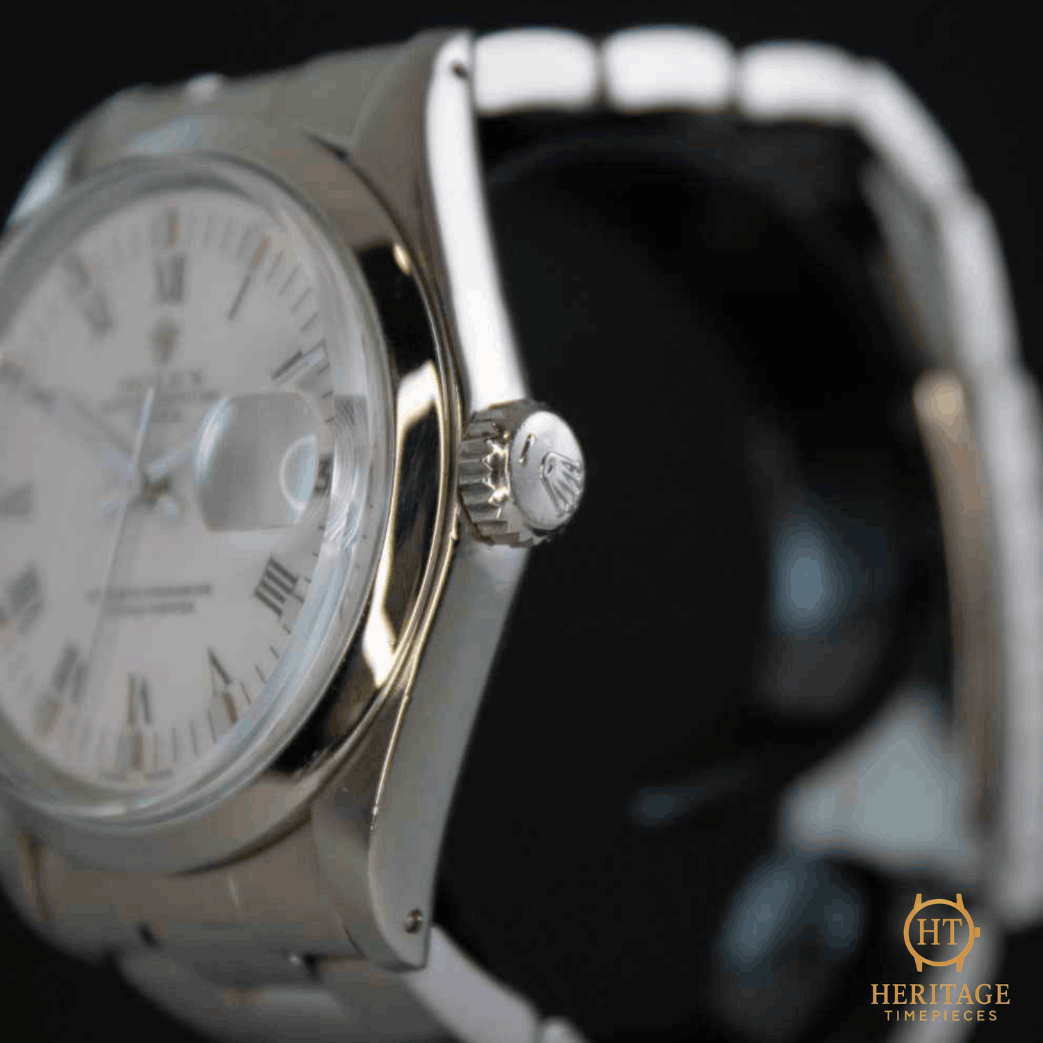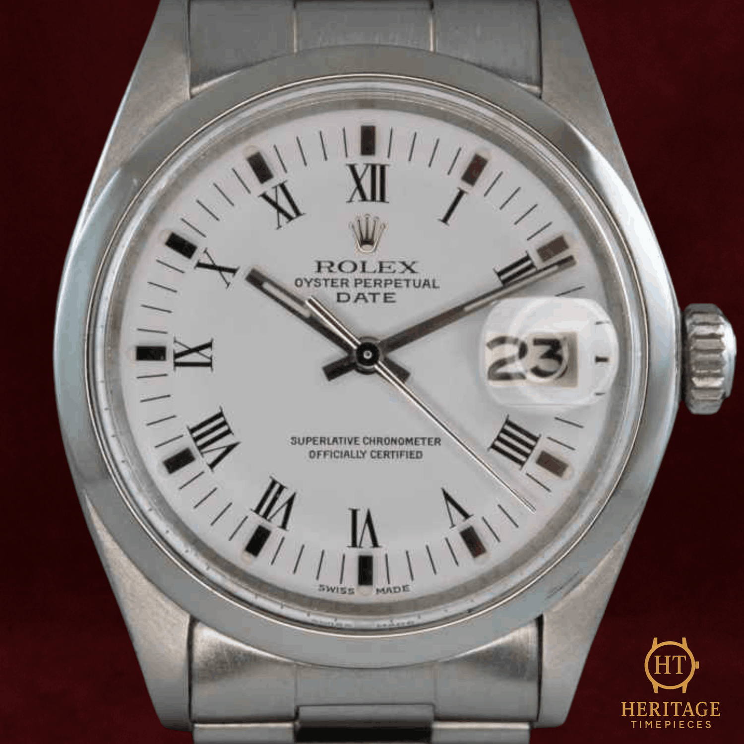 Heritage Narrative The Rolex Date reference 1500 is one of the purest expressions of Rolex’s classic Oyster Perpetual design language. Produced throughout the 1960s and 1970s, the Date line offered the robustness and reliability of Rolex’s professional models in a more compact and understated format. This 1970 example features the traditional 34 mm stainless steel Oyster case, a size that was considered the standard gentleman’s watch of its era. The clean white dial, paired with simple applied hour markers and baton hands, reflects Rolex’s functional, no-nonsense approach to design during the period. The acrylic (plexiglass) crystal further anchors this watch firmly in the vintage era, delivering warmth and distortion that collectors still value today. Powered by a Rolex automatic movement and built with a screw-down crown and caseback, the Date 1500 was designed as an everyday watch. It is not flashy, not experimental, and that is precisely its appeal. This reference represents Rolex at its most honest: durable, legible, and timeless. Technical Specifications Reference:1500 Year:1970 Movement:Rolex automatic mechanical movement, self-winding Case:34 mm stainless steel Oyster case with screw-down crown and caseback Bezel:Smooth stainless steel bezel Crystal:Acrylic (plexiglass) crystal Dial / Hands:White dial with applied hour markers and baton hands Bracelet / Clasp:Stainless steel Oyster bracelet with folding clasp Water resistance:Not specified (vintage model; water resistance not guaranteed) Condition & Inclusions Overall grade:Pre-owned — good vintage condition with visible signs of age consistent with a 1970 production watch Service status:Movement running and tested Set:Watch only — no original box or documentation Shipping & Logistics Stored off-site and shipped fully insured within 1–3 business days.Worldwide shipping available; buyer responsible for any import duties or taxes. Shipping & Returns Complimentary insured worldwide shipping and a 14-day return window (watch must be returned in the same condition supplied). Each timepiece is authenticated, time-tested, and professionally prepared prior to dispatch. All shipments include secure packaging, tracking, and full insurance coverage.