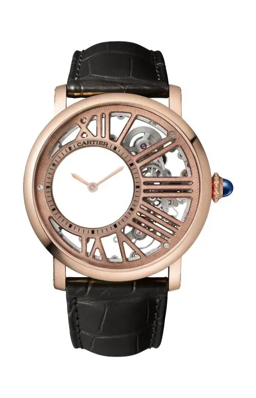 Cartier Rotonde De Cartier Scheletrato Con Visualizzazione Misteriosa, 42 mm, Oro Rosa, WHRO0060