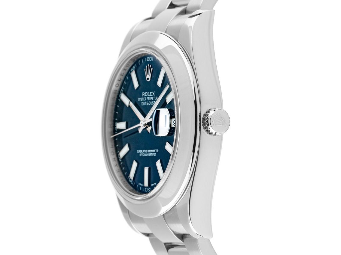 Rolex Datejust II Stahl Automatik Armband OysterGehäuse Edelstahl poliert und satiniert, Gehäusedurchmesser ohne Krone 41mm, Gehäusehöhe 11,7mm. Lünette Edelstahl glatt und poliert. Armband Oyster Edelstahl poliert und satiniert, Rolex Faltschließe Edelstahl mit Hersteller-Logo. Zifferblatt blau mit aufgesetzten weißgoldenen Indexen und weißgoldenen Zeigern. Uhrwerk Automatik, Chronometer mit Zeugnis, Rolex Manufakturkaliber 3136 mit 31 Edelsteinen. Anzeige von Stunde, Minute und Sekunde über Zeiger aus der Mitte mit Sekundenstopp zur sekundengenauen Einstellung der Uhrzeit, Datumsanzeige mit Schnellverstellung unter Glaslupe bei 3 Uhr. Saphirglas kratzfest. Krone verschraubbar mit Hersteller-Logo. Boden Edelstahl verschraubt. Gewicht der Uhr inklusive Armband 143g, Länge des Armbandes inklusive Gehäuse 175mm. Referenznummer: 116300, Gehäusenummer: PP708XXX, ID: P2885157000426HW-12500, Artikelnummer: 10000085606. Mit Gangkontrolle und kompletter äußerlicher Aufarbeitung von April 2026. Original Rolex Box mit Umkarton und Garantie Papiere von März 2015, LC 200 / Greece EU, sowie Beschreibung, Ledermäppchen, Rolex Chronometer-Siegel, Tag, Rolex Service Card von Februar 2026 mit Garantie bis Februar 2028 sowie Erstkauferechnung und Watchregister Auszug von April 2026, The Watch Register Zertifikat / ohne Eintrag (Internationale Datenbank für verlorene oder gestohlene Uhren),Full Set. Superschnäppchen, Kapitalanlage mit Wertsteigerungspotential, aus erster Hand, fast nicht getragen. Wie Neu. Lieferzeit sofort.