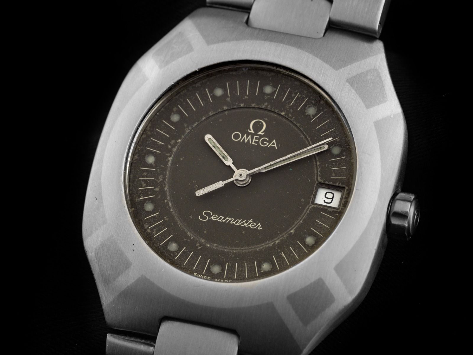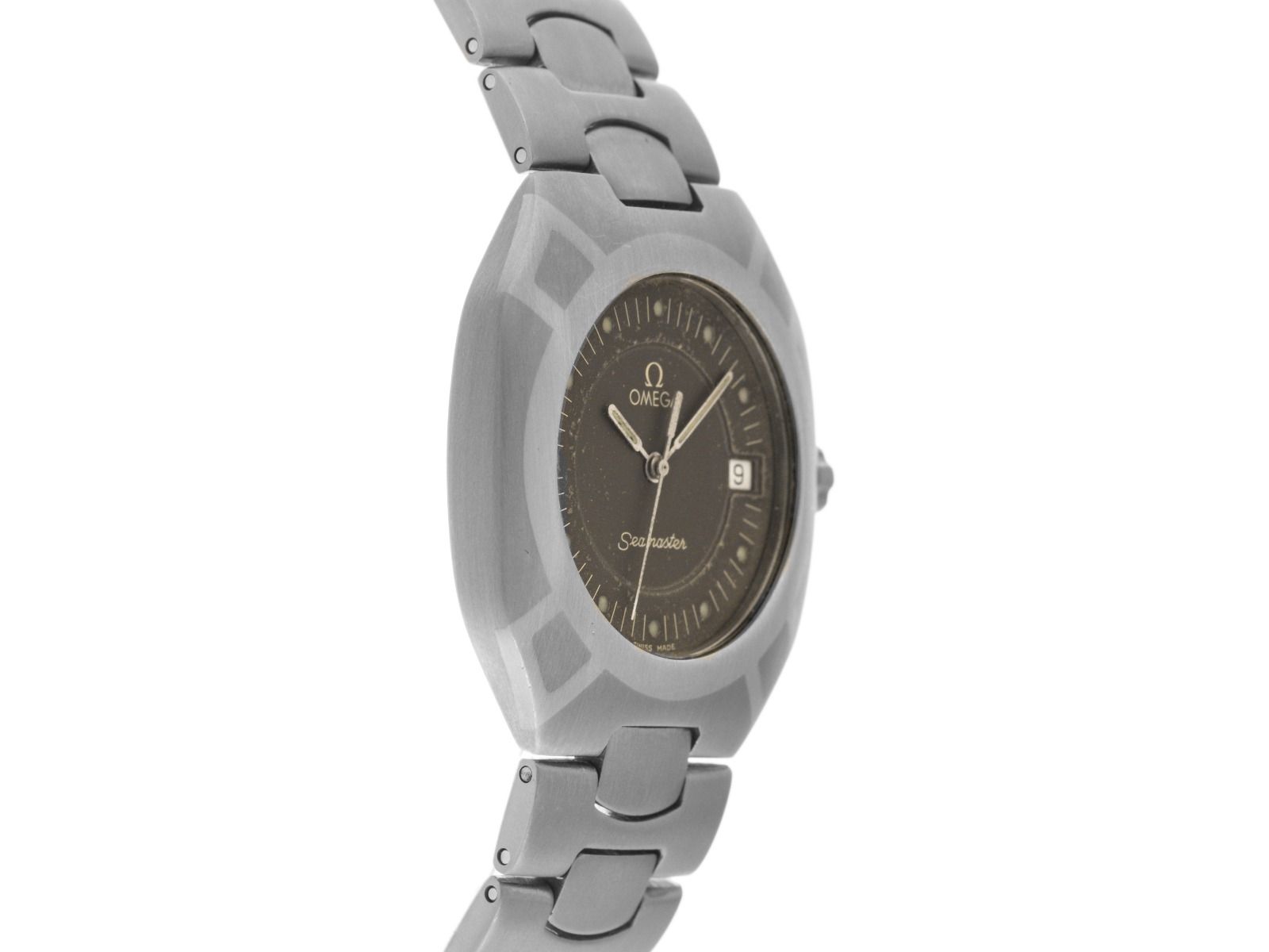 Omega Seamaster Polaris Titan Quarz Bracciale Titan Cassa Titan satinato, dimensioni della cassa senza corona (L x P x A) 35,3 x 31 x 6,8mm. Lunetta in titanio con intarsi, satinata. Bracciale in titanio satinato, chiusura pieghevole di sicurezza in titanio con logo del produttore. Quadrante grigio patinato con indici a punto e lancette bianche patinate. Movimento al quarzo, calibro Omega 1438 con 6 pietre preziose. Indicazione di ore, minuti e secondi tramite lancette centrali con fermo dei secondi per la regolazione precisa dell'ora, indicazione della data con regolazione rapida a ore 3. Vetro zaffiro antigraffio. Corona a vite con logo del produttore. Fondello in titanio inciso. Peso dell'orologio incluso il bracciale 63g, lunghezza del bracciale incluso la cassa 180mm. Numero di riferimento: 3960981, numero di cassa: 1960XXX, anno di costruzione: 1981, ID: P290610000426HW-3500, numero articolo: 10000085652. Con controllo del movimento, nuova batteria e completa revisione esterna di aprile 2026. Scatola originale Omega con confezione esterna e estratto del Watch Register di aprile 2026, certificato The Watch Register / senza registrazione (database internazionale per orologi smarriti o rubati). Super affare, investimento con potenziale di apprezzamento, pezzo da collezione molto raro. Ottime condizioni. Tempi di consegna immediati. Tempi di consegna immediati. Includendo sigillo certified pre owned / passaporto orologio con un'immagine a colori, la descrizione dettagliata e il valore di sostituzione dell'orologio superiore a 3500,-€ e 1000 giorni di garanzia dalla data di acquisto.