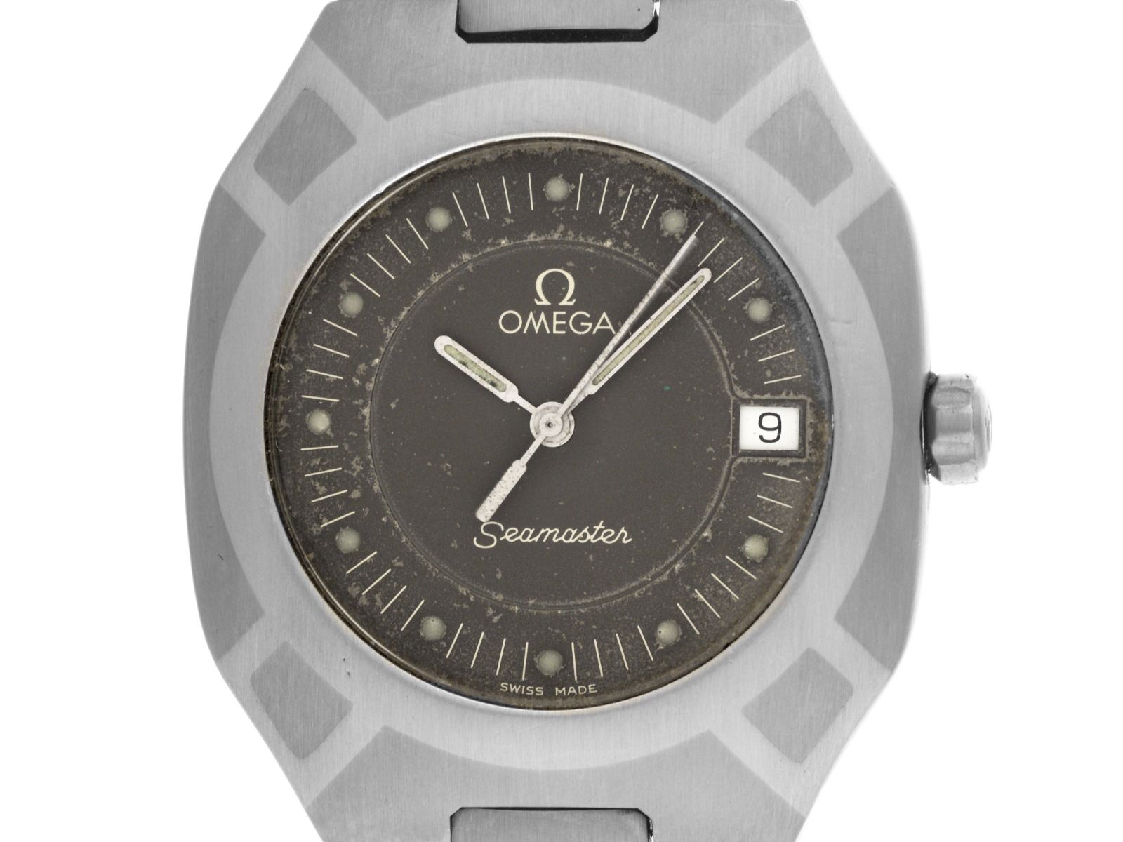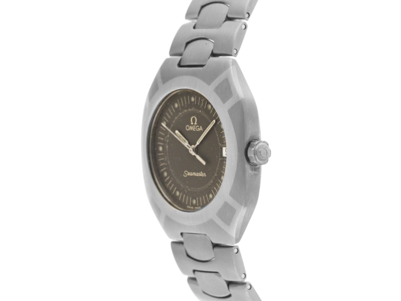 Omega Seamaster Polaris Titan Quarz Armband Titan Gehäuse Titan satiniert, Gehäusemaße ohne Krone (L x B x H) 35,3 x 31 x 6,8mm. Lünette Titan mit Intarsien, satiniert. Armband Titan satiniert, Sicherheitsfaltschließe Titan mit Hersteller-Logo. Zifferblatt patiniert grau mit Punktindexen und weißen patinierten Zeigern. Uhrwerk quarzgesteuert, Kaliber Omega 1438 mit 6 Edelsteinen. Anzeige von Stunde, Minute und Sekunde über Zeiger aus der Mitte mit Sekundenstopp zur sekundengenauen Einstellung der Uhrzeit, Datumsanzeige mit Schnellverstellung bei 3 Uhr. Saphirglas kratzfest. Krone verschraubbar mit Hersteller-Logo. Boden Titan graviert. Gewicht der Uhr inklusive Armband 63g, Länge des Armbandes inklusive Gehäuse 180mm. Referenznummer: 3960981, Gehäusenummer: 1960XXX, Baujahr: 1981, ID: P290610000426HW-3500, Artikelnummer: 10000085652. Mit Gangkontrolle, neuer Batterie und kompletter äußerlicher Aufarbeitung von April 2026. Original Omega Box mit Umkarton und Watchregister Auszug von April 2026, The Watch Register Zertifikat / ohne Eintrag (Internationale Datenbank für verlorene oder gestohlene Uhren). Superschnäppchen, Kapitalanlage mit Wertsteigerungspotential, sehr seltenes Sammlerstück. Sehr guter Zustand. Lieferzeit sofort. Lieferzeit sofort. Inklusive certified pre owned Siegel / Uhrenpass mit einem Farbbild, der genauen Beschreibung sowie dem Wiederbeschaffungswert der Uhr über 3500,-€ und 1000 Tage Garantie ab Kaufdatum.