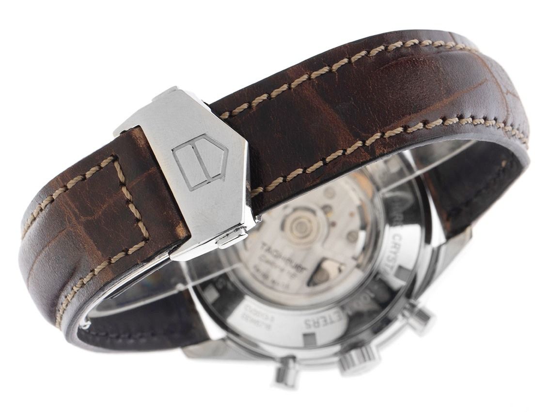 Tag Heuer Carrera Acciaio Automatico Cronografo Cinturino in Pelle Chiusura Deployante