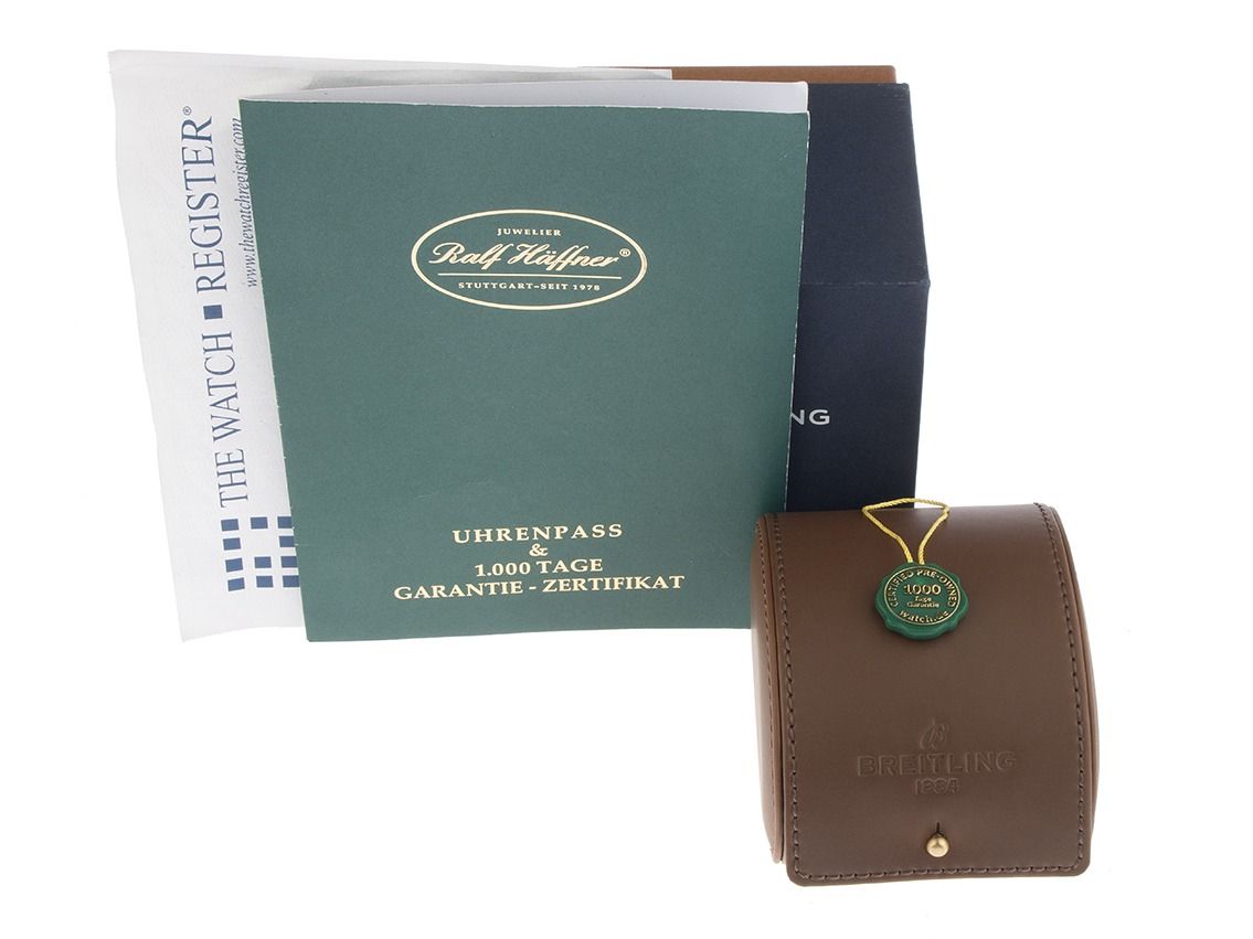 Scatola originale Breitling con imballaggio e estratto del Watch Register di marzo 2026, certificato The Watch Register / senza registrazione (database internazionale per orologi smarriti o rubati). Super affare. Ottime condizioni. Tempi di consegna immediati.