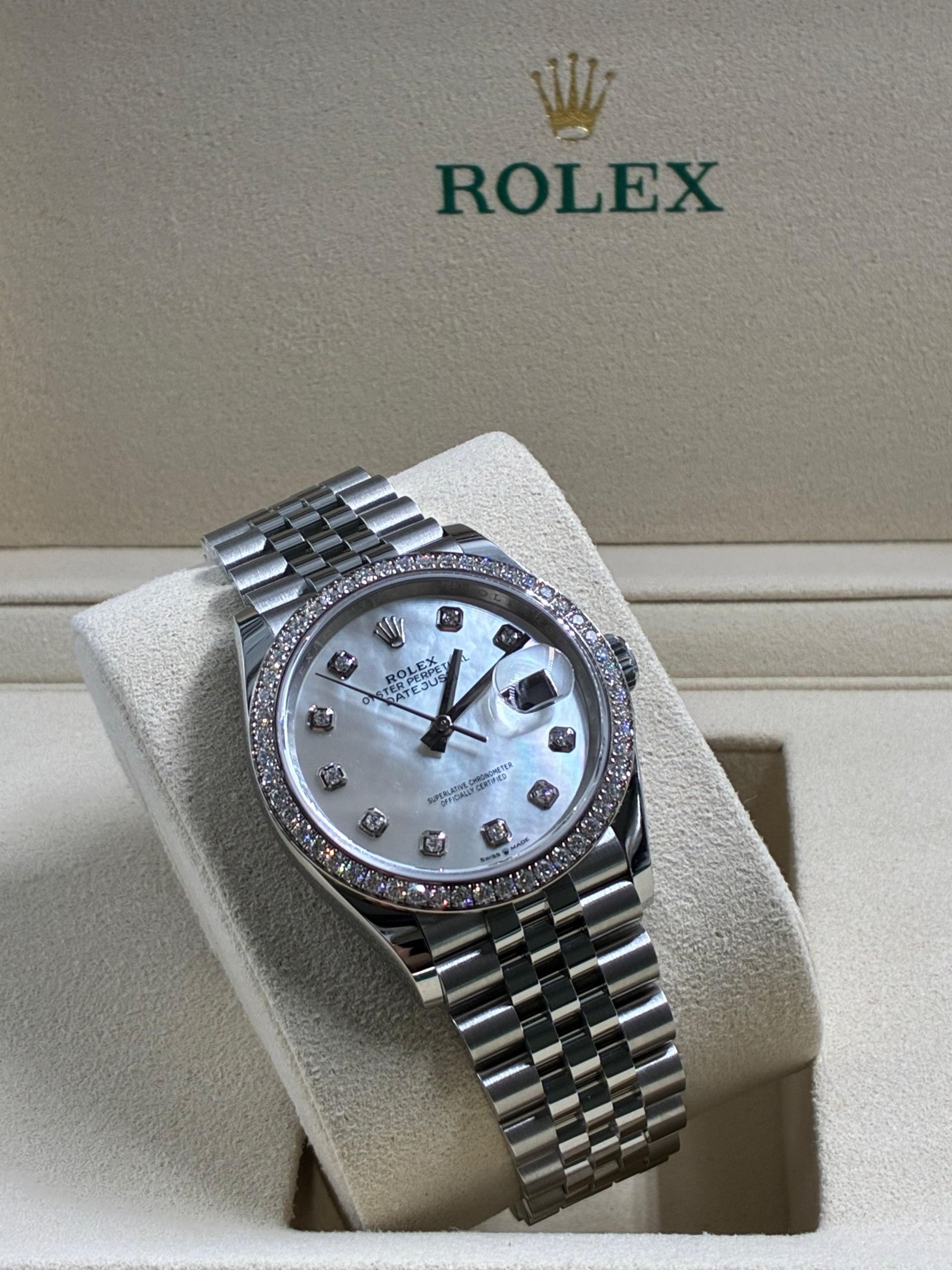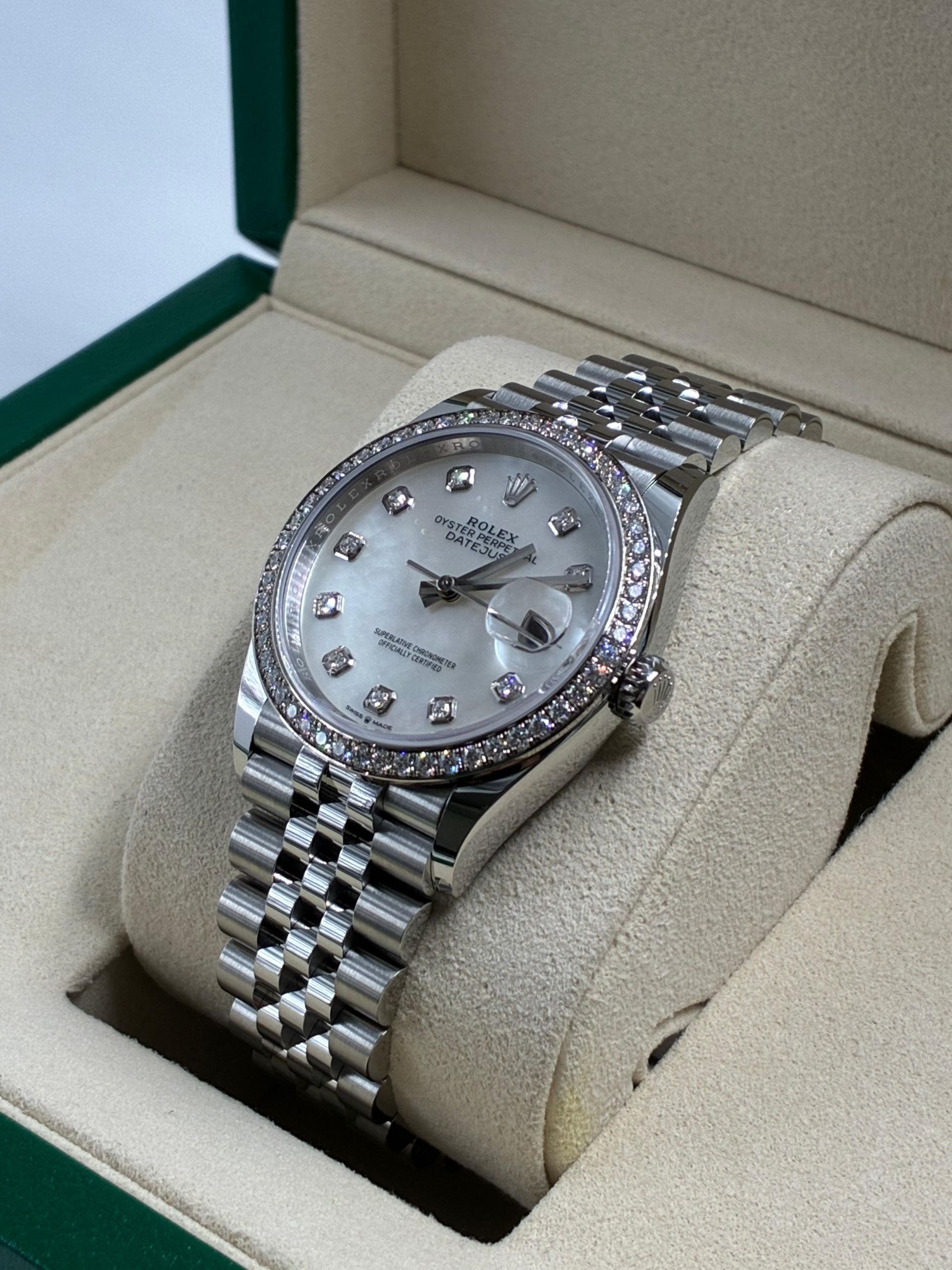 Rolex Datejust 36 Rolex Datejust 36 M126284RBR-0011 - White mother-of-pearl set with diamonds dial, diamond bezel, jubilee bracelet