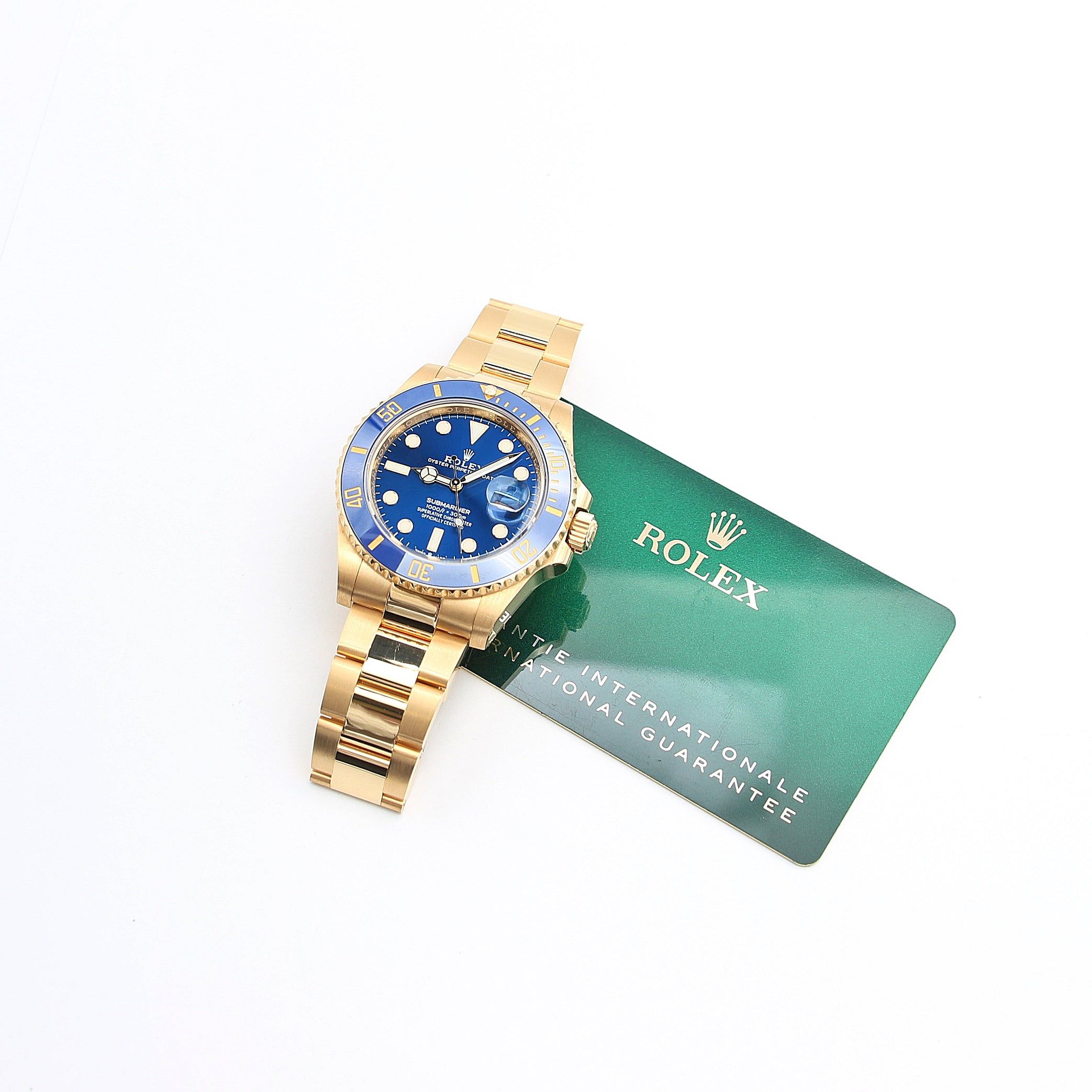 For sale at Debonar Watches: pre-owned Rolex Submariner 126618LB, with original papers and box.This particular Rolex Submariner reference, 126618LB, has a date window, blue ceramic (Cerachrom) bezel, blue dial, and oyster bracelet. That isn’t everything though. Housed in the Rolex Submariner 126618LB yellow gold 3235 in-house calibre movement.The Rolex Submariner Date 126618LB replaces the 40mm 116816LB. Like all other new Rolex Submariner 41mm watches, this yellow gold reference 126618LB also has thinner lugs and a wider bracelet: this Rolex Submariner 126618LB is equipped with the famous Oyster bracelet and oyster clasp. This Submariner is made of yellow gold, with its perfectly defined dimensions, and sturdy clasp. BRAND ROLEX MODEL SUBMARINER DATE REFERENCE 126618LB CASE MATERIAL 18k YELLOW GOLD MOVEMENT AUTOMATIC DIMENSION 41x40 MM DIAL BLUE BEZEL CERAMIC CRYSTAL SAPPHIRE BRACELET TYPE & Lenght OYSTER BRACELET 18 CM BRACELET MATERIAL 18k YELLOW GOLD ORIGINAL BOX YES ORIGINAL PAPERS YES YEAR 2020-22 CONDITION EXCELLENT