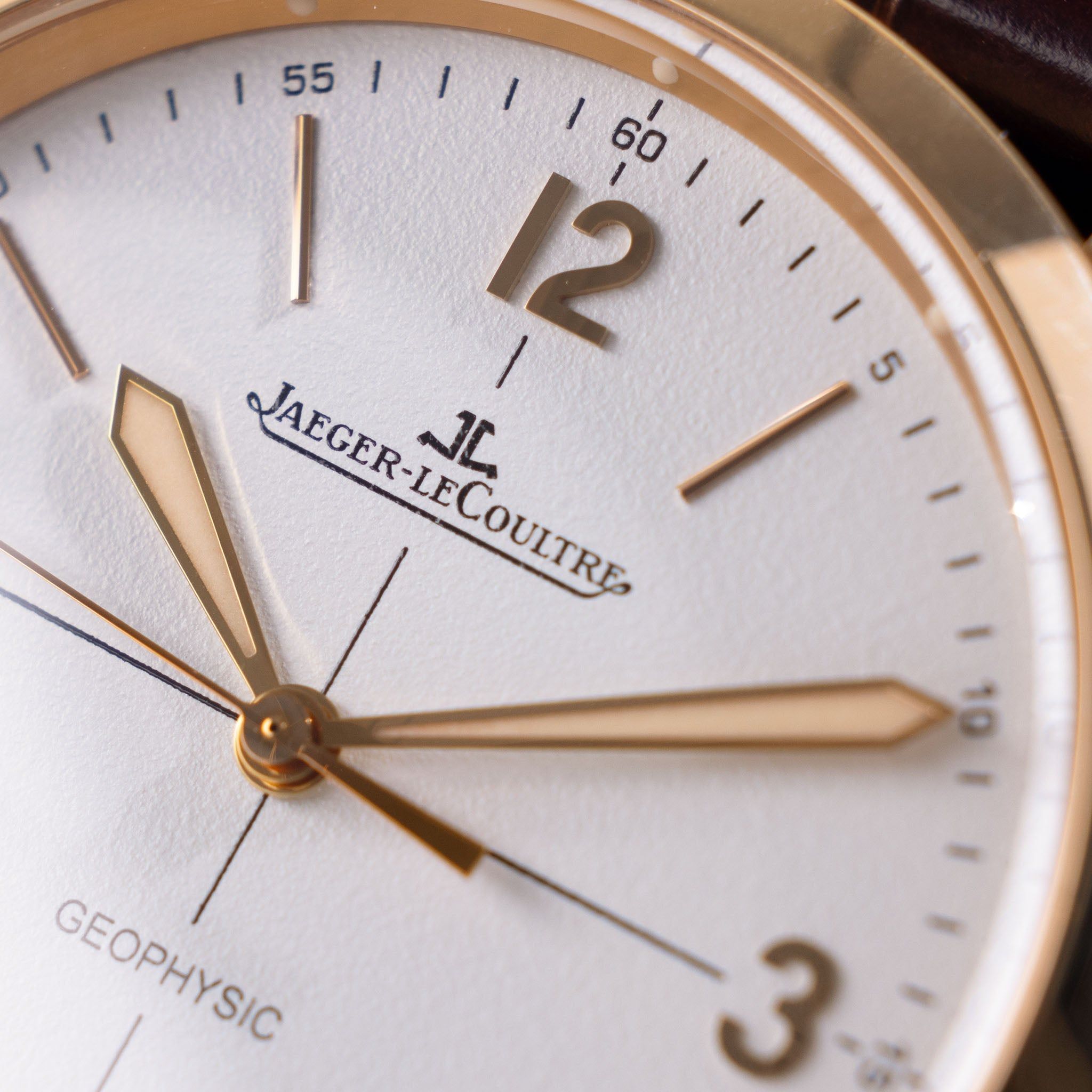 We are delighted to be offering this amazing Jaeger-LeCoultre Geophysic 1958, a tribute to the original 1958 model, crafted in stunning rose gold and limited to just 300 pieces. The original Geophysic was first of all This limited edition for the 125 th anniversary of JLC and second was the world’s first "International Geophysical Year."This was an effort put forth and supported by different nations to encourage scientific exploration and experimentation in the fields related to geophysics, such as , radioactivity ,seismology, electromagnetism , and solar activity. These watches were sturdy and extremely precise ; as the watches were used in extreme conditions ( as for example in extreme electro magnetism laboratories and even on the first nuclear submarine !) offers a perfect blend of historical details in a contemporary luxury watch that we know you’ll all love! The 38.5mm rose gold case remains in outstanding condition. The watch houses a white dial, with Arabic numerals at 3, 6, 9, and 12 with stick markers and a simple minute track and striking sword hands. A cool detail is the lume plots on the rehaut, mirroring the design of the 1950s original. Ofcourse this has also the anti-magnetic cage as the original had . This watch comes with a lightly used JLC strap and an 18k rose gold pin buckle, presented in a substantial inner and outer box that includes a beautifully crafted JLC loupe inside. An envelope containing the booklet and the original guarantee certificate, which confirms a sale in Germany in 2015, accompanies this watch. The JLC cal 898/1 movement has been fully checked and regulated by our watchmaker. Visit us at our watch lounge or arrange a call to discuss more about this amazing, limited edition JLC! Specifications:- Jaeger-LeCoultre Geophysic 1958- 38.5mm rose gold case- JLC caliber 898/1 automatic- anti - magneic inner caseback- Serial number 305xxxx dating to 2015- White dial with Arabic numerals and stick markers- Lume plots on rehaut as per the 1950s design- JLC strap with 18k rose gold pin buckle- Large box set including JLC branding and original documents- Sold in Germany, 2015- Fully checked by our watchmaker- One-year mechanical warranty- Includes a handmade leather pouch- Free worldwide FedEx Priority shipping This watch has been certified at Certifiwatch under registration number CF-0104477