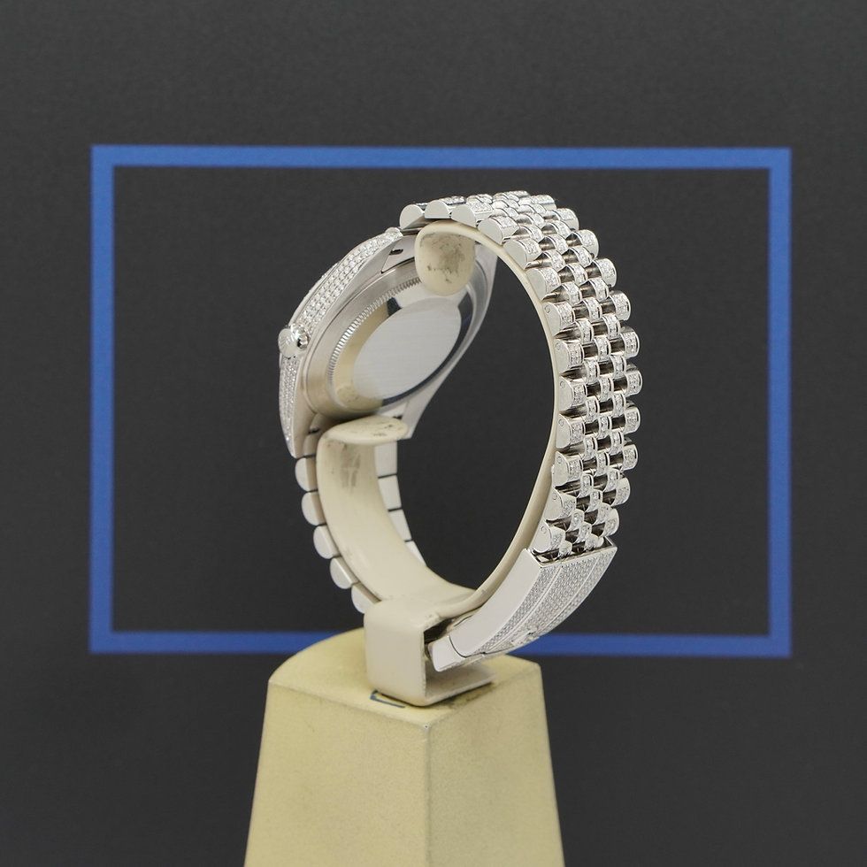 Rolex Datejust Iced Out | Ref. 126300 | 2024 | Arabische Wijzerplaat | B&P. Interne ID: 166 Fabrikant: Rolex Model: Datejust Iced Out Arabische Wijzerplaat Referentie: 126300 Uurwerk kaliber: 3135 - 31 Juwelen Kastdiameter: 40mm Bandbreedte: 20mm Band: massief Rolex Jubilee Opwinding: automatisch uurwerk Geslacht: heren; Unisex Wijzerplaat: Diamanten Arabische Wijzerplaat Lugs: massief Glas: Saffierglas Omvang: Originele doos & Rolex kaart Jaar van vervaardiging: 2023 CONDITIE VAN DE HORLOGE EN UITGEVOERDE WERKZAAMHEDEN * Het horloge verkeert in zeer goede staat * Uurwerk is getest op nauwkeurigheid * Horloge is gecontroleerd op echtheid ALGEMENE INFORMATIE: Afbeeldingen: De getoonde afbeeldingen zijn geen archieffoto's! We fotograferen elk horlogemodel zo nauwkeurig mogelijk. Aangezien vlekken en schaduwen soms niet te vermijden zijn, neem gerust contact met ons op of stuur ons een bericht als een afbeelding niet helemaal duidelijk is voor jou. Garantie: vervalt als het horloge door een andere horlogemaker wordt geopend Waterdichtheid: geen permanente eigenschap; Jaarlijkse inspectie aanbevolen De aangeboden goederen zijn onderhevig aan de bijzondere belasting volgens §25a. Fouten en typfouten voorbehouden.