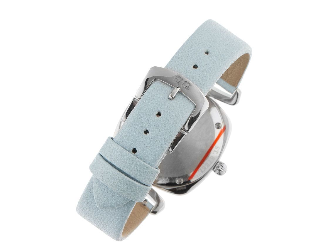 Glashütte Original Pavonina Stahl Diamanten Quarz Armband Textil Leder Faltschließe Gehäuse Edelstahl poliert, Anstöße mit Brillanten besetzt, zusammen ca. 0,14ct TW-VVSI (feines Weiß mit sehr kleinen Einschlüssen), quadratisch, Gehäusemaße ohne Krone 31x31mm, Gehäusehöhe 7,5mm. Glashütte Original Armband Leder helblau, Anstoßbreite 16mm, Doppelfaltschließe Edelstahl mit Hersteller-Logo. Zifferblatt silber galvanisiert und guillochiert mit rhodinierten arabischen Ziffern und Diamant Indexen sowie rhodinierten Edelstahl Zeigern. Uhrwerk quarzgesteuert, Manufakturkaliber Glashütte Original 03-02. Anzeige von Stunde und Minute über Zeiger aus der Mitte. Saphirglas gewölbt en kratzfest. Krone mit Brillant, ca. 0,03ct TW-VVSI (mooi Weiß met zeer kleine Einschlüssen). Boden Edelstahl 4-fach verschraubt und graviert. Gewicht der Uhr inclusief Armband 46g. Waterdicht tot 5 ATM. Referentienummer: 1-03-02-12-35, ID: ST116083201020H-7300, Artikelnummer: 10000054986. Originele Glashütte Original Box und Garantie Papiere von 2022, complete set. Ongetroffen. Lieferzeit sofort.
