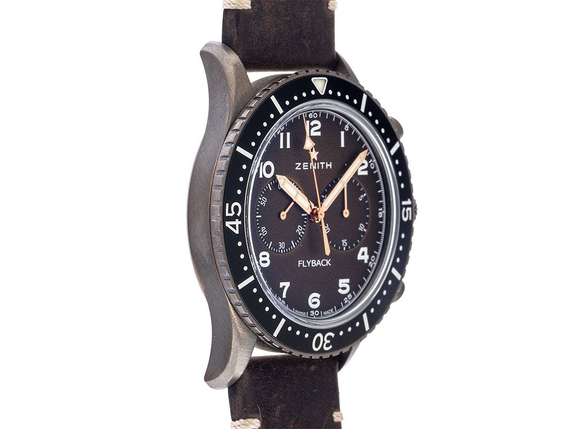 Zenith Pilot Chronometer Flyback Typ CP-2 Bronze Automatik Chronograph Armband Leder Kautschuk