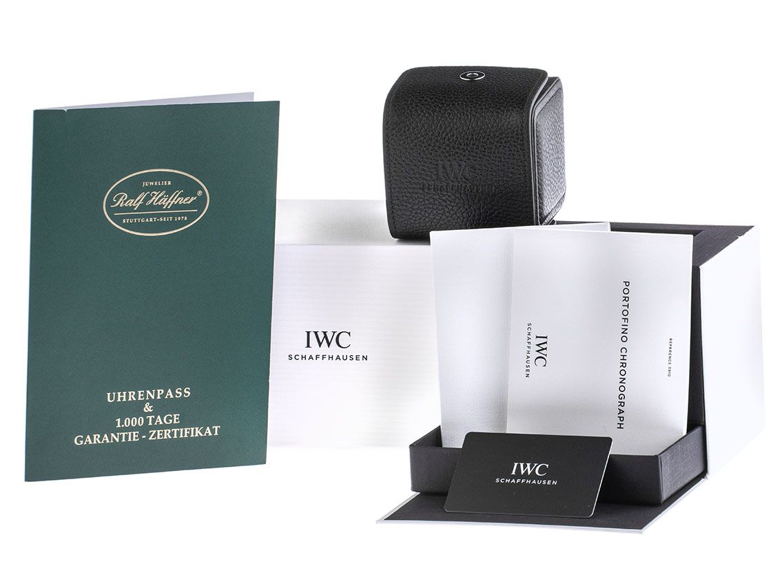 Gehäuse Edelstahl satiniert, Gehäusedurchmesser ohne Krone 41mm, Gehäusehöhe 15,3mm. Lünette Edelstahl satiniert. Armband Leder braun mit Ziernaht, Anstoßbreite 20mm, IWC Stiftschließe Edelstahl mit Hersteller-Logo. Zifferblatt zwart met Arabische Leuchtziffern und Indexen sowie Leuchtzeigern. Uurwerk Automatik, Chronograaf, Manufakturkaliber IWC 69380 met 33 Edelsteinen, Gangreserve ca. 46 minuten. Anzeige von Stunde und Minute über Zeiger aus der Mitte, kleine Sekunde mit Sekundenstopp zur sekundengenauen Einstellung der Uhrzeit bei 6 Uhr, Datums- und Wochentagsanzeige in Englisch mit Schnellverstellung bei 3 Uhr. Saphirglas kratzfest und gewölbt. Krone verschraubbar mit Hersteller-Logo. Boden Edelstahl verschraubt und graviert. Gewicht der Uhr inclusief Armband 109g. Waterdicht tot 6 ATM. Referentienummer: IW387903, ID: ST1160118241024H-5600, Artikelnummer: 10000076700. Originele IWC-doos met doos en garantiebewijs van september 2024, volledige set. Ongetroffen. Lieferzeit sofort.