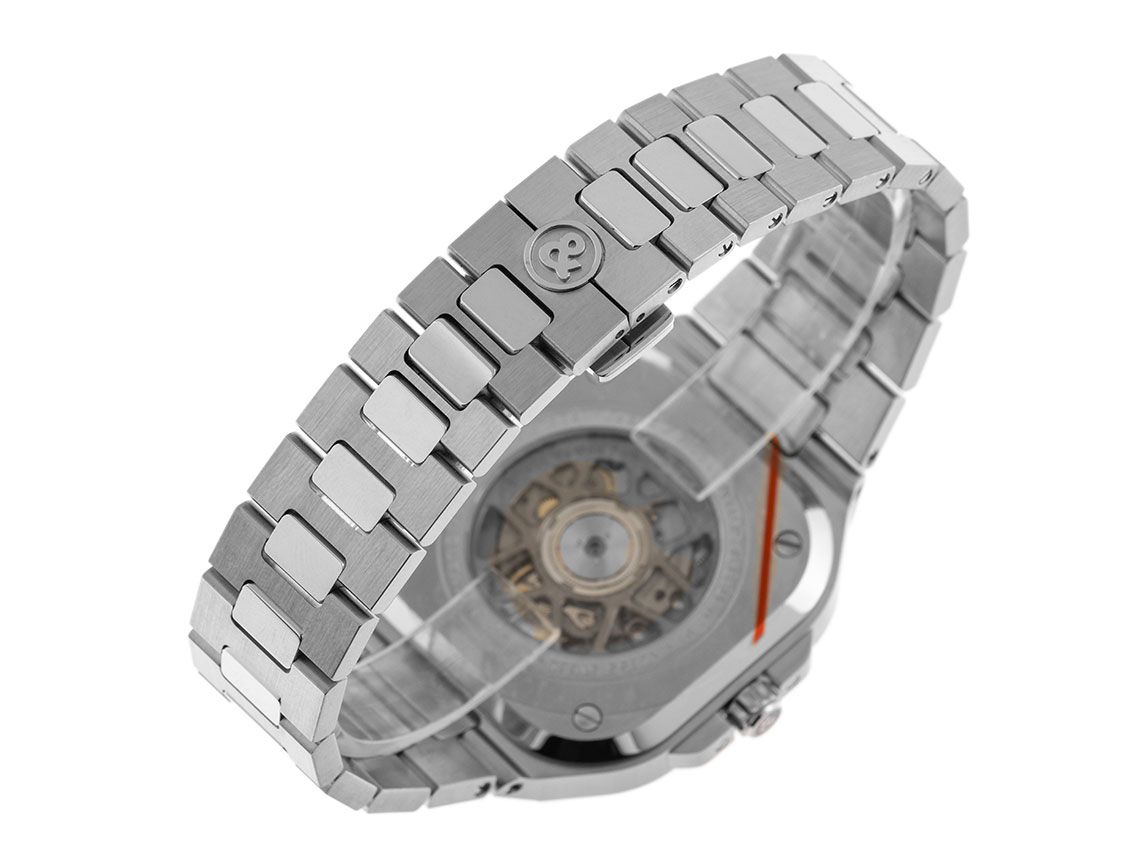 Gehäuse Edelstahl poliert und satiniert, Gehäusemaße ohne Krone (L x B x H) 41 x 41 x 11,5mm. Lünette Edelstahl poliert und satiniert, 4-fach verschraubt. Armband Edelstahl poliert und satiniert, Doppelsicherheitsfaltschließe Edelstahl mit Hersteller-Logo. Zifferblatt schwarz mit aufgesetzten arabischen Leuchtziffern, Leuchtindexen und Edelstahl Leuchtzeigern. Uhrwerk Automatik, Bell & Ross Kaliber BR-CAL.325 met 25 Edelsteinen. Anzeige von Stunde, Minute und Sekunde über Zeiger aus der Mitte mit Sekundenstopp zur sekundengenauen Einstellung der Uhrzeit bei 3 Uhr, Datumsanzeige mit Schnellverstellung bei 3 Uhr, GMT (zweite Zeitzone) über Zeiger mit roter Leuchtspitze aus der Mitte. Saphirglas kratzfest und entspiegelt. Krone verschraubbar mit Flankenschutz und Hersteller-Logo. Boden Edelstahl 4-fach verschraubt und graviert mit Saphirglas Sichtfenster. Gewicht van de armband 174g, lengte van de armband 205mm. Waterdicht tot 10 ATM. Referentienummer: BR05G-BL-ST/SST, ID: ST116075961124H-5700, Artikelnummer: 10000077058. Originele Bell & Ross Box und Garantie Papiere von November 2024 sowie Beschreibung, Complete set. Nieuw. Lieferzeit sofort.