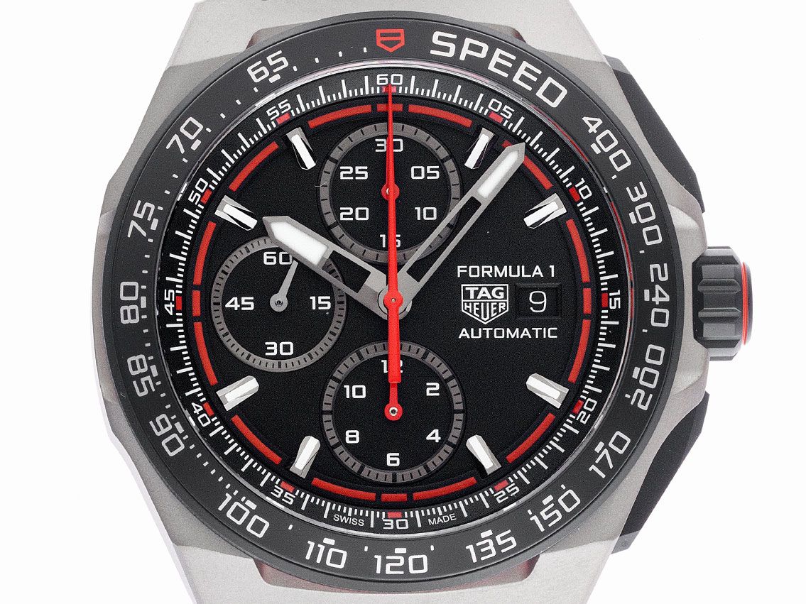 Tag Heuer Formula 1 Titan Automatik Armband KautschukGehäuse Titan satiniert, Gehäusedurchmesser ohne Krone 44mm, Gehäusehöhe 14,5mm. Lünette Titan mit Speedometer-Skala. Armband Kautschuk schwarz, Anstoßbreite 25mm, Stiftschließe mit Hersteller-Logo. Zifferblatt schwarz mit aufgesetzten Leuchtindexen und polierten Leuchtzeigern. Uhrwerk Automatik, Chronograph, Calibre 16, Gangreserve ca. 42 Stunden. Anzeige von Stunde und Minute über Zeiger aus der Mitte, kleine Sekunde mit Sekundenstopp zur sekundengenauen Einstellung der Uhrzeit bei 9 Uhr, Datumsanzeige mit Schnellverstellung bei 3 Uhr. Saphirglas kratzfest. Krone verschraubbar mit Flankenschutz und Hersteller-Logo. Boden Titan verschraubt und graviert mit Tag Heuer Relief. Gewicht der Uhr inklusive Armband 111g. Wasserdicht bis 20 ATM. Referenznummer: CAZ101AN.FT8055, ID: ST116061200425H-4800, Artikelnummer: 10000079646. Original Tag Heuer Box mit Umkarton und Garantie Papiere von März 2025 sowie Beschreibung, Full Set. Ungetragen. Lieferzeit sofort.