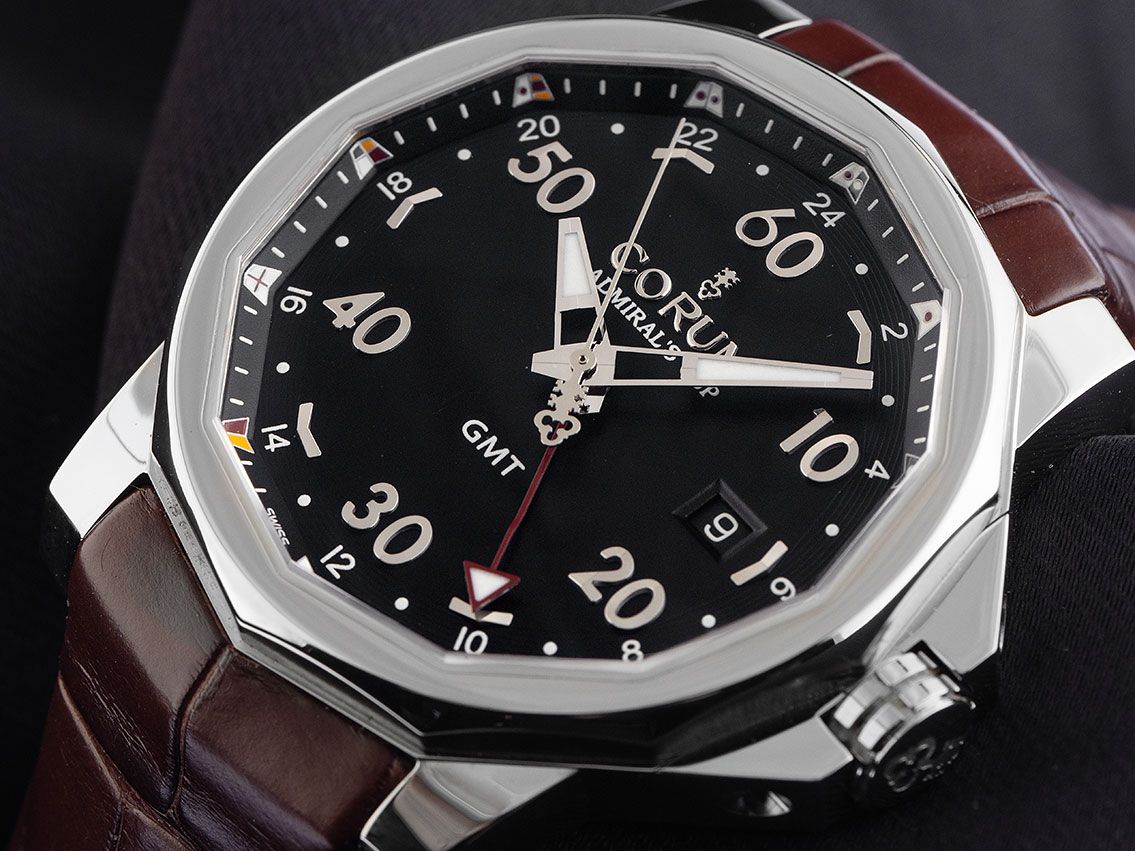 Corum Admirals Cup GMT Automatik Armband Krokoleder Faltschließe Limitiert