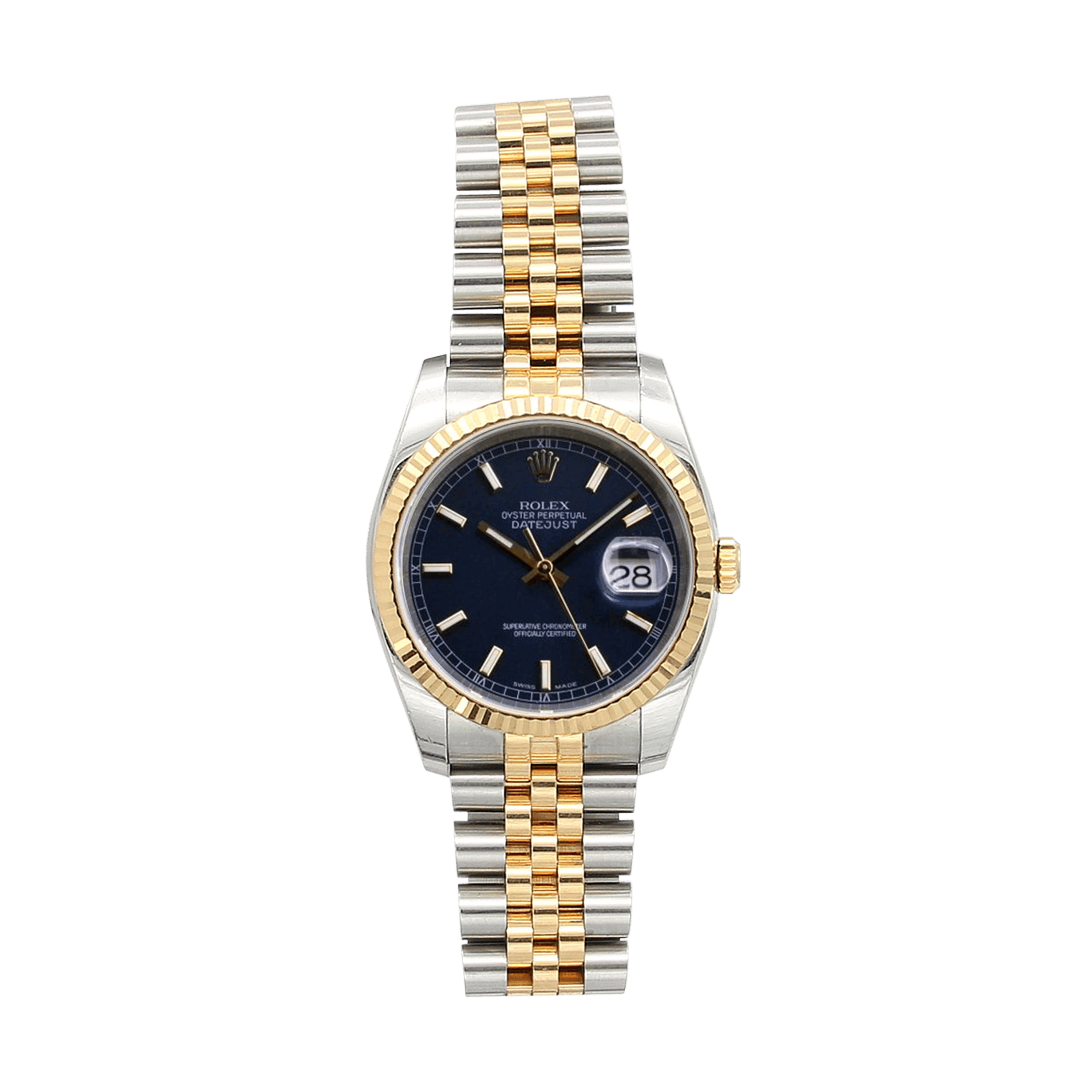 For sale at Debonar Watches: pre-owned Rolex Datejust 116233, in excellent conditions, with a spoortive blue dial, full set.Experience the perfect balance of sportiness and elegance with the Rolex Datejust 116233, featuring a striking blue dial. The two-tone construction of the 36mm ref. 116233, topped by a bezel which displays just a hint of flamboyance, is really the perfect analogy of the watchmaker itself. The strength of steel and the lavishness of gold says everything about a luxury watch meant to be worn everyday, finished off with a surround that draws the eye without overpowering. There really isn’t anything else which says ‘Rolex’ quite so clearly. A bit of its story:Rolex DateJust (inspired by Rolex Bubbleback) was first introduced in 1945 to celebrate the 40th anniversary of Rolex. The Datejust is one of the earliest Rolex models that survives till today.From its debut way back in 1945, a revolutionary launch that put the brand firmly on the map, it has remained at the top of the company’s bestseller list for three quarters of a century.Rolex’s ref. 162XX series of Datejust watches first emerged in 1988, a replacement for the relatively short-lived ref. 160XX range. BRAND ROLEX MODEL DATEJUST REFERENCE 116233 CASE MATERIAL STEEL MOVEMENT AUTOMATIC DIMENSION 36 MM DIAL BLUE BEZEL GOLD CRYSTAL SAPPHIRE BRACELET TYPE JUBILEE BRACELET MATERIAL GOLD/STEEL BRACELET LENGHT 18 CM ORIGINAL BOX YES ORIGINAL PAPERS YES YEAR APPROX. '10s CONDITION EXCELLENT