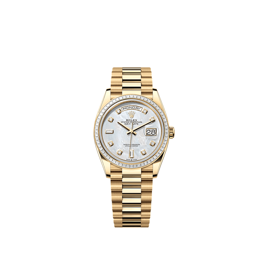 Rolex 128398TBR-0004 - Day-Date 36 Yellow Gold - Baguette / MOP - Diamond / President