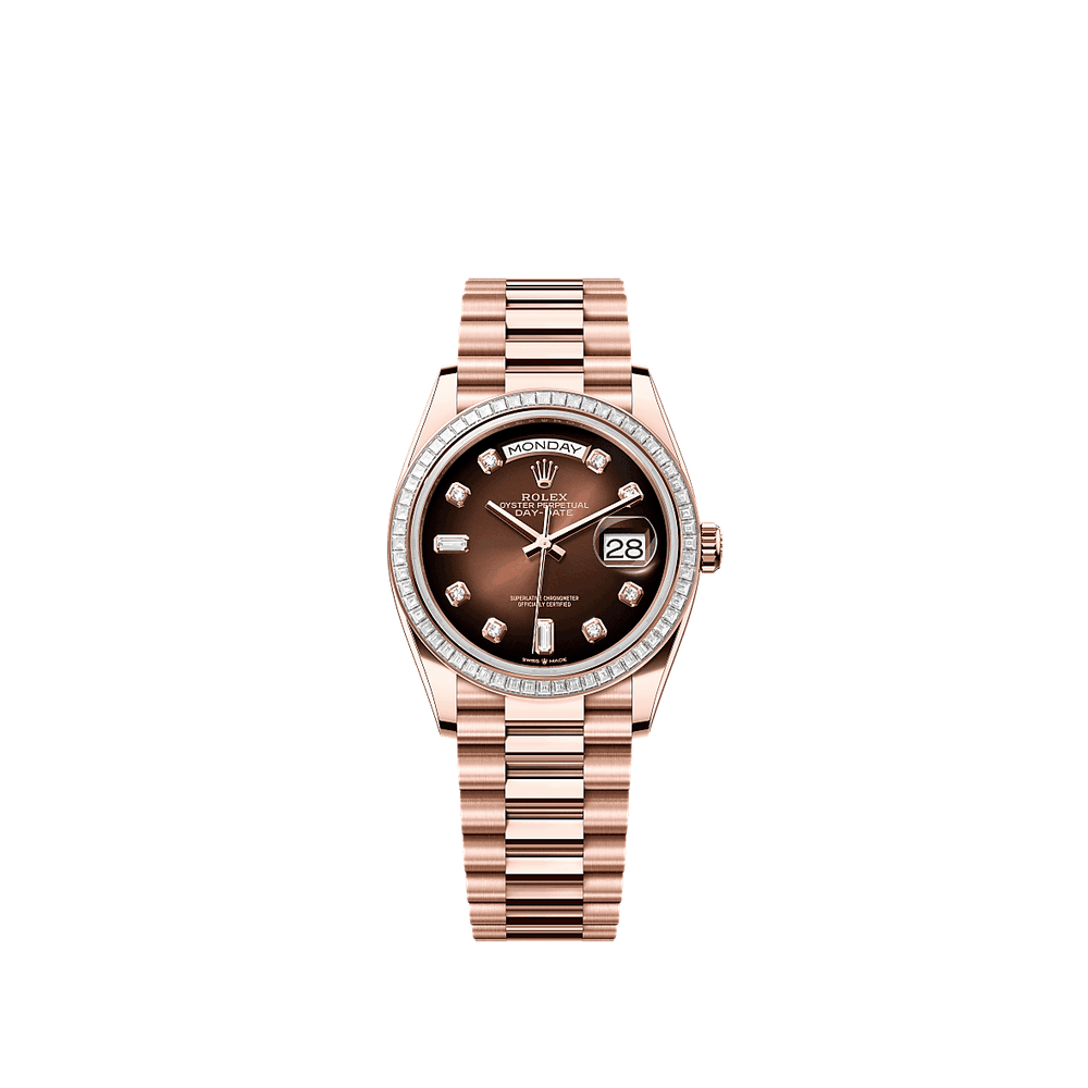 Rolex 128395TBR-0004 - Day-Date 36 Everose Gold - Baguette / Brown Ombr̩ - Diamond / President