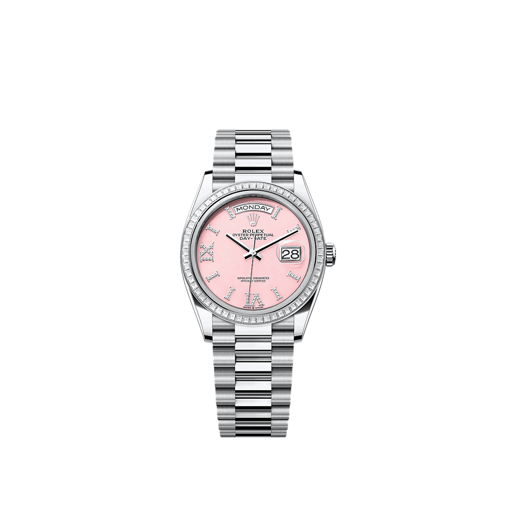 Rolex 128396TBR-0009 Day-Date 36 Platinum - Diamond / Pink Opal / President