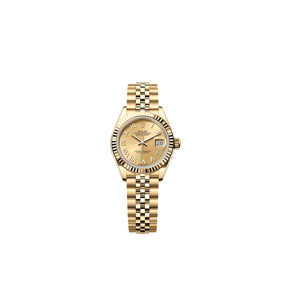 Rolex 279178-0023 Lady-Datejust 28 Yellow Gold Fluted / Jubilee / Champagne Roman