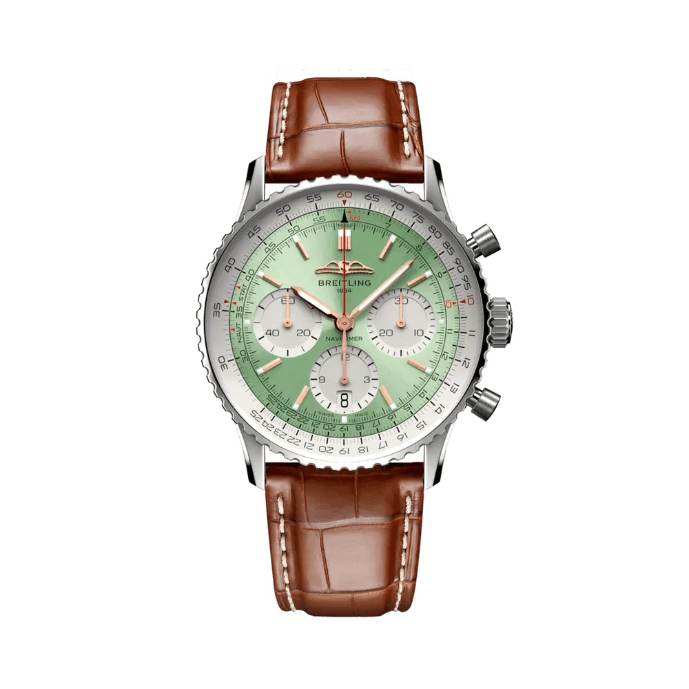Breitling AB0139211L1P1 Navitimer B01 Chronograph 41 Stainless Steel / Mint Green / Alligator - Folding