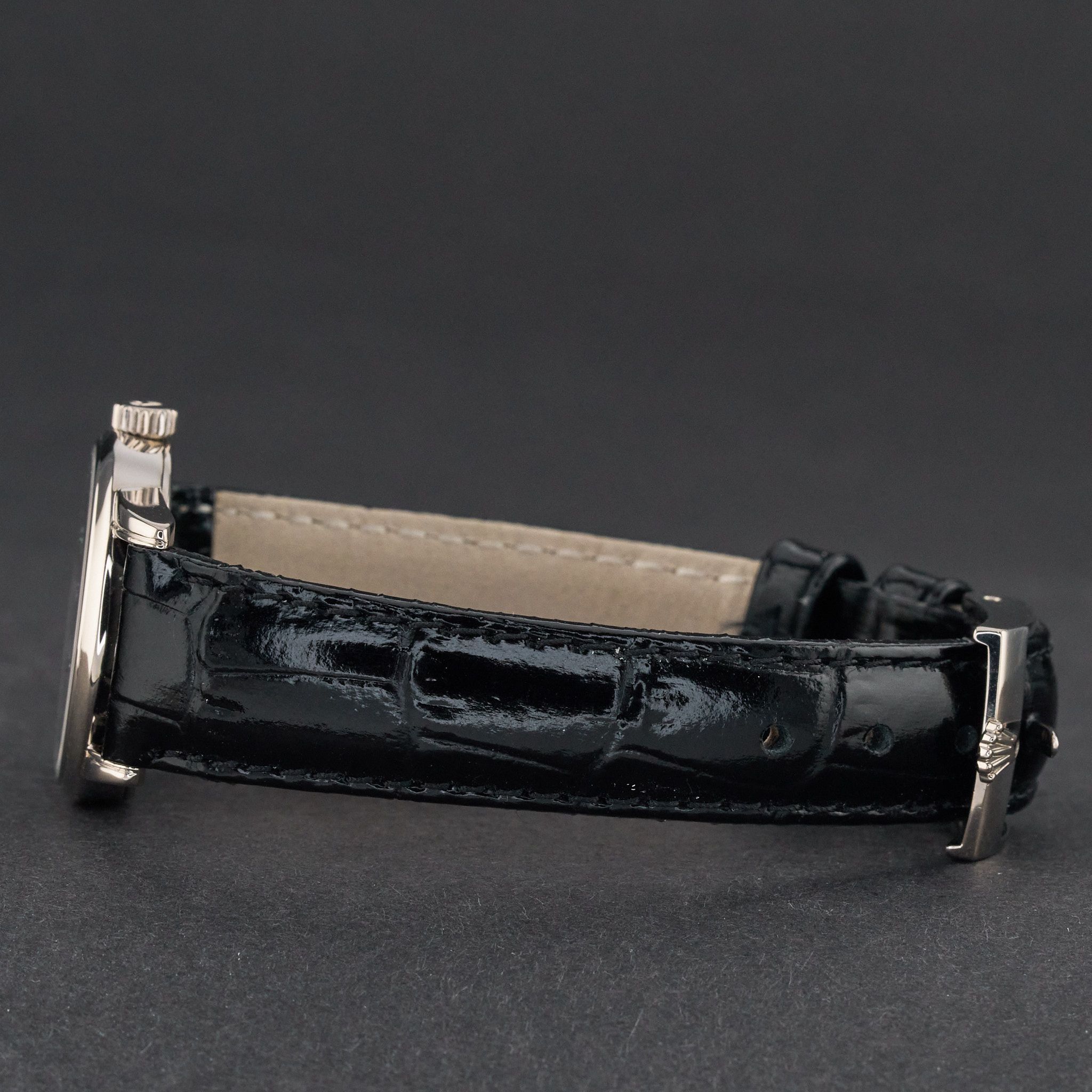 Gemaakt voor degenen die stille onderscheidingen, formele elegantie en de blijvende verfijning zoeken die alleen de naam Cellini kan bieden. Deze Rolex Cellini 6111/9 heeft een zwarte Romeinse wijzerplaat en is vervaardigd uit 18K witgoud, met een productiejaar van 2011.