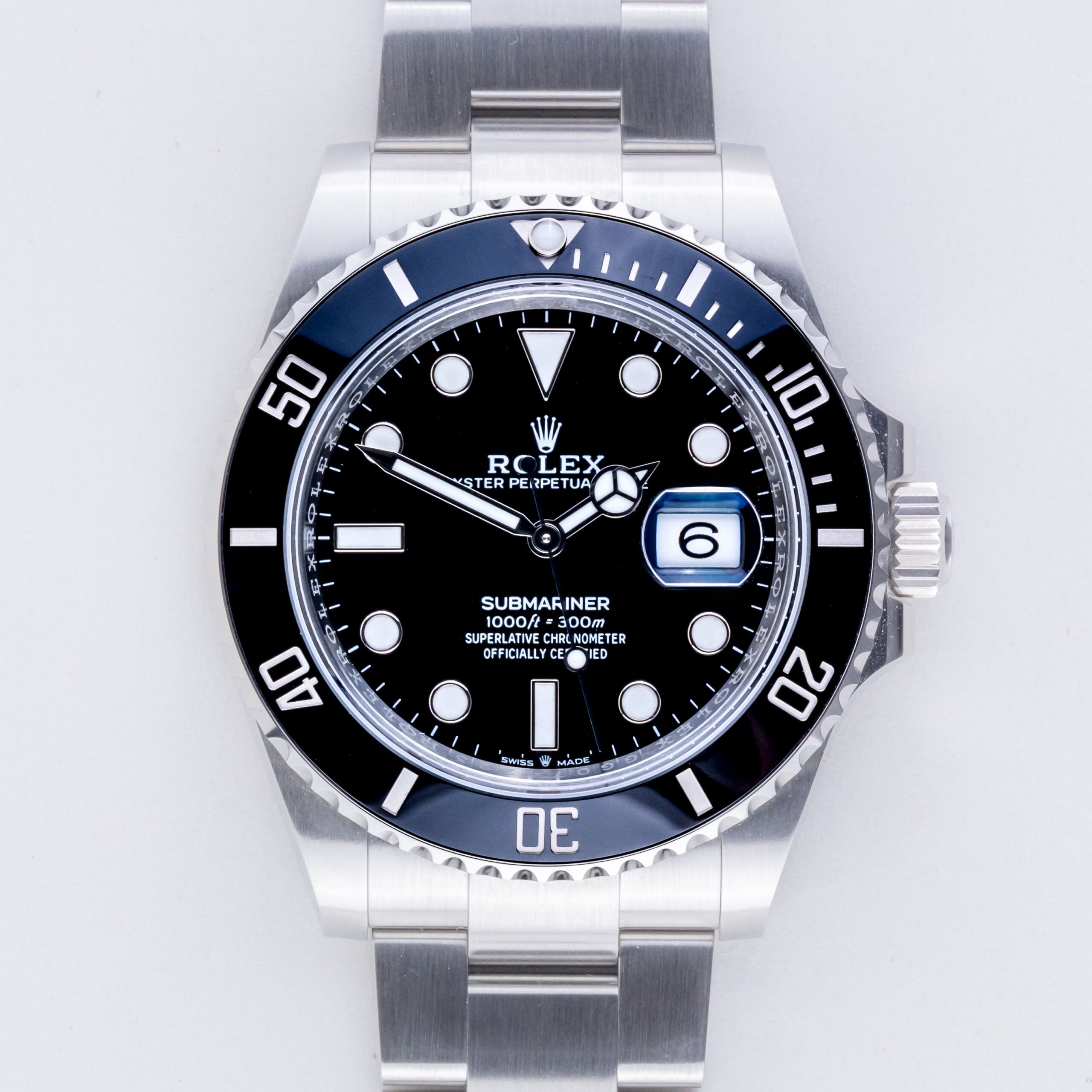 NEW Rolex Submariner Date reference 126610LN from 2025 including full set. The Submariner Date measures a 41mm stainless steel case, a stainless steel Oyster bracelet w/ Oysterlock clasp and a ceramic (rotatable) bezel. The Submariner Date 126610LN features an automatic movement caliber 3235, a scratch resistance sapphire crystal and black dial with chromalight display.