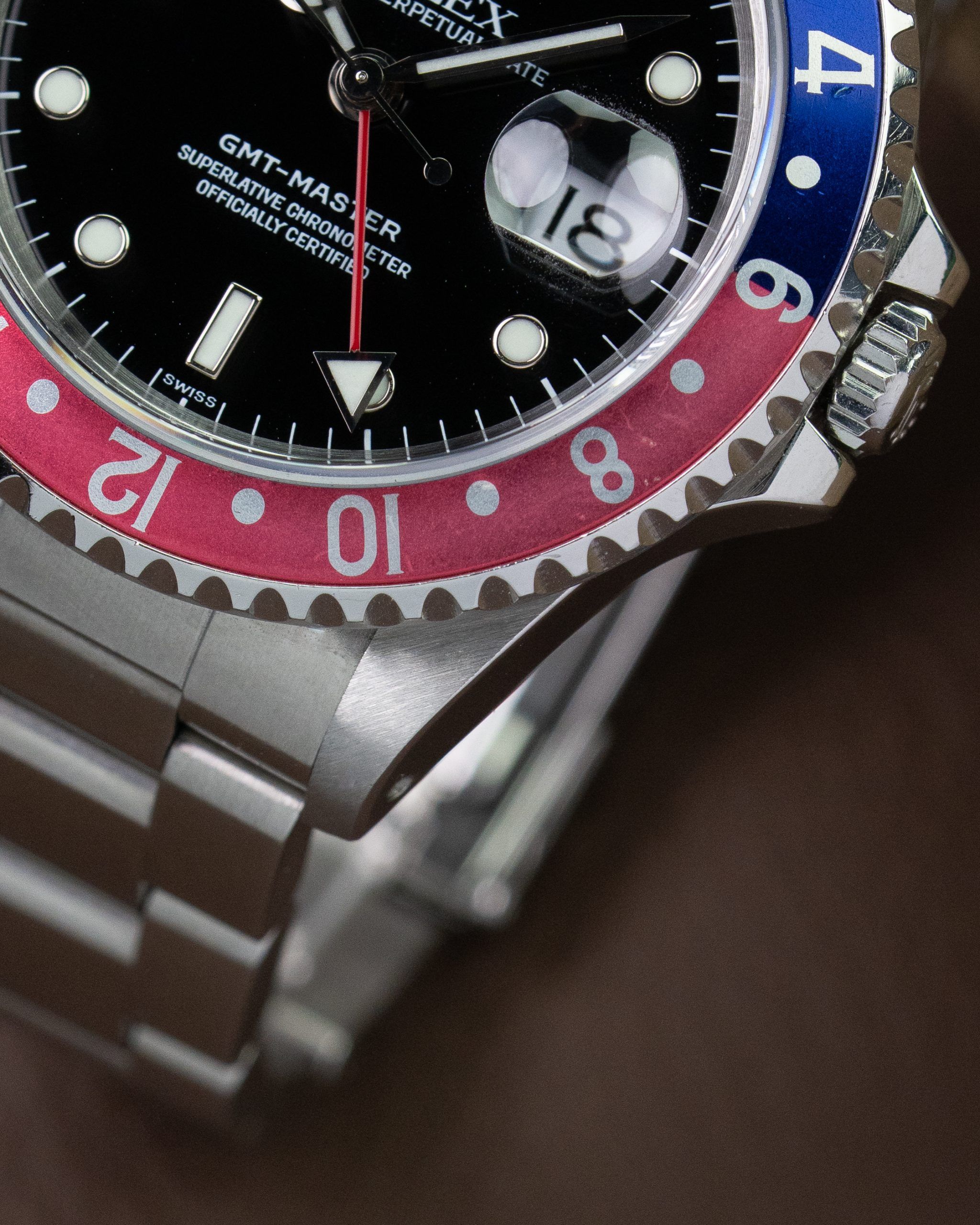 It carries the name of the original GMT Master, comes in a very modern case, has quickset date (which the 16710 hasn’t) and has the overall vintage aesthetics that we love so much.