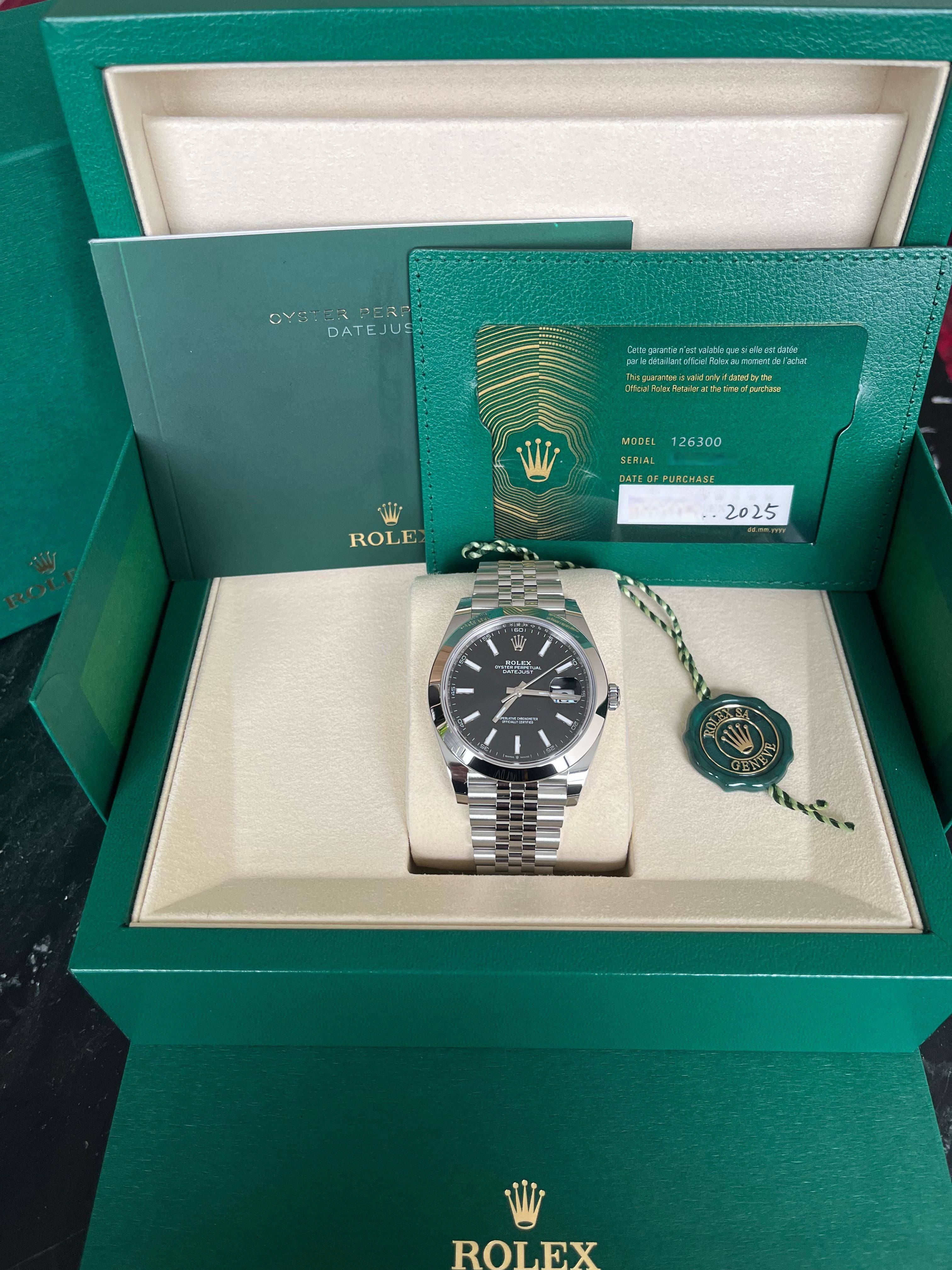 Rolex Datejust 126300 – Black Dial (2025 Model)Bold and timeless. The 2025 Rolex Datejust 126300 features a clean black dial set in a 41mm Oystersteel case and Jubilee bracelet. A perfect balance of classic design and everyday elegance. Now available.