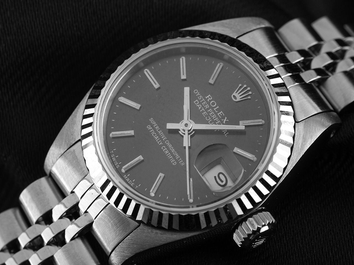Gehäuse Edelstahl poliert und satiniert, Gehäusedurchmesser ohne Krone 26mm, Gehäusehöhe 10,7mm. Lünette 18kt Weißgold geriffelt und poliert. Armband Jubilé Edelstahl poliert und satiniert, Faltschließe Edelstahl mit Hersteller-Logo. Zifferblatt schwarz mit aufgesetzten weißgoldenen Indexen und weißgoldenen Zeigern. Uhrwerk Automatik, Chronometer, Rolex Manufakturkaliber 2135 met 29 Edelsteinen. Anzeige von Stunde, Minute und Sekunde über Zeiger aus der Mitte mit Sekundenstopp zur sekundengenauen Einstellung der Uhrzeit, Datumsanzeige mit Schnellverstellung unter Glaslupe bei 3 Uhr open 6/9 (offene 6 und 9 in der Datumsanzeige). Saphirglas kratzfest. Krone verschraubbar mit Hersteller-Logo. Boden Edelstahl verschraubt und graviert. Gewicht der Uhr inklusive Armband 52g, Länge des Armbandes inklusive Gehäuse 170mm. Referentienummer: 69174, Gehäusenummer: E680XXX, Bouwjaar: 1990, ID: P105583480625H-8100, Artikelnummer: 10000080753. Met Gangkontrolle en kompletter äußerlicher Aufarbeitung von Juni 2025. Originele Rolex Box mit Umkarton und Garantie Papiere von Juli 1992, LC 400/ Hong Kong, Beschreibung, Ledermäppchen, Übersetzungsheft, Rolex Chronometer-Siegel, Tag sowie Watchregister Auszug von Juni 2025, The Watch Register Zertifikat / ohne Eintrag (Internationale Datenbank für verlorene oder gestohlene Uhren), Volledige set. Superschnäppchen, Kapitalanlage mit Wertsteigerungspotential, fast nicht getragen. Zeer goede staat. Lieferzeit sofort.