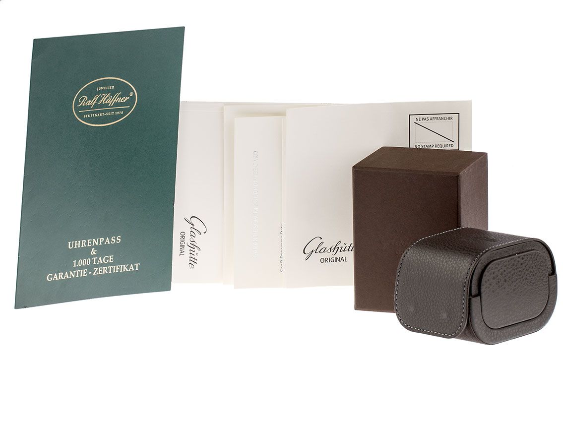 Inklusive Uhrenpass mit einem Farbbild, der genauen Beschreibung sowie dem Wiederbeschaffungswert der Uhr über 11800,-€ und 1000 Tage Garantie ab Kaufdatum.