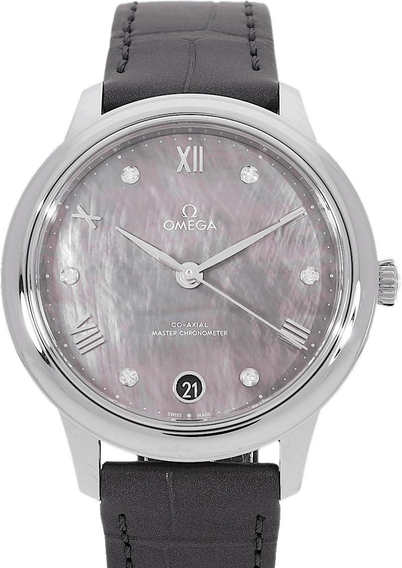 Omega De Ville Prestige Co-Axial Master Chronometer 34 mm, Reference: 434.13.34.20.57.001, Gender: Female, Size: 34mm, Strap material: Alligator Leather, Movement: Automatic, Year: 2024, Condition: New and unworn. An inspection by our certified watchmakers guarantees authenticity., Documents: Original papers, CHRONEXT Certificate
