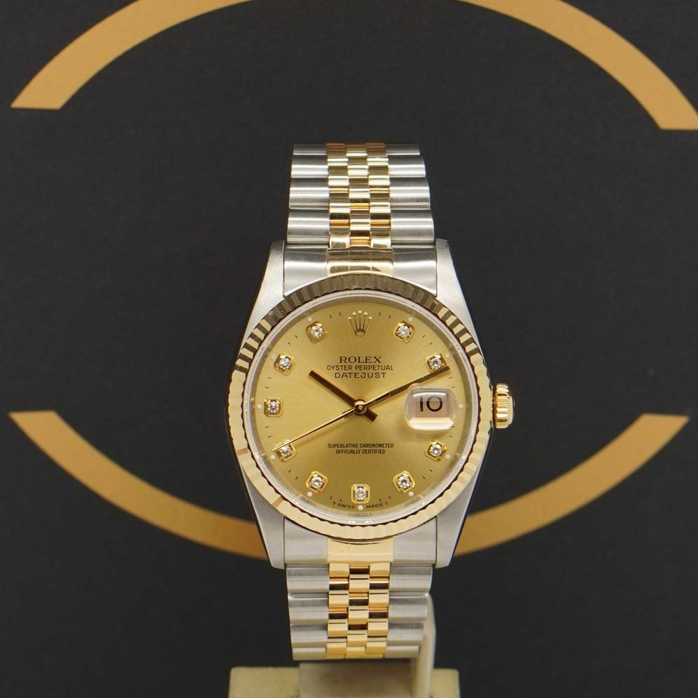 Rolex Datejust 36 16233 with Box & Papers from 1995. Very good condition. Every watch is checked on authenticity by our master watchmakers. With every sale an authenticity certificate is given. On every watch there is a warranty of 12 months on the watch and movement. Although it is rarely used since watches are maintained and - if neccesary - serviced before being sold.
