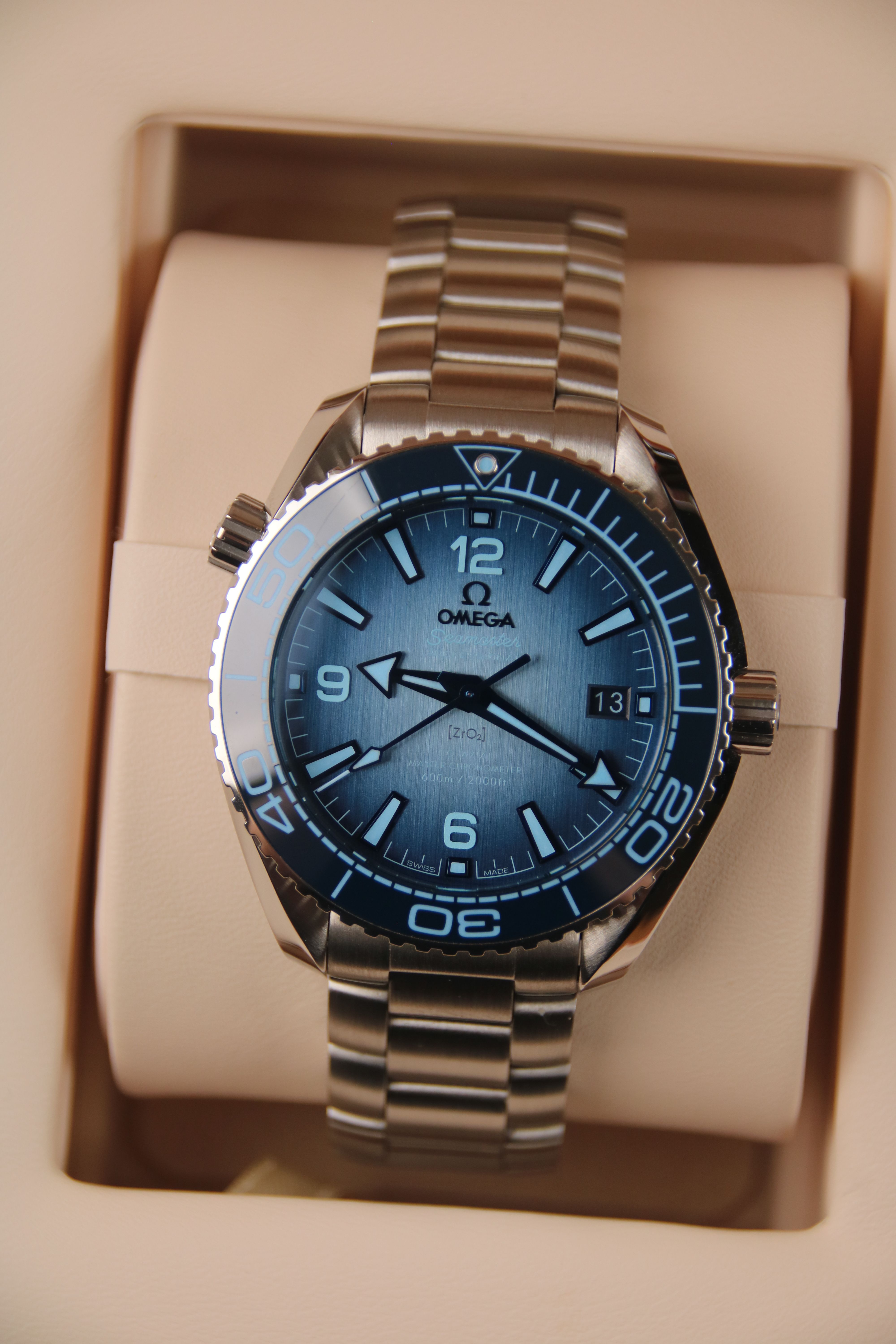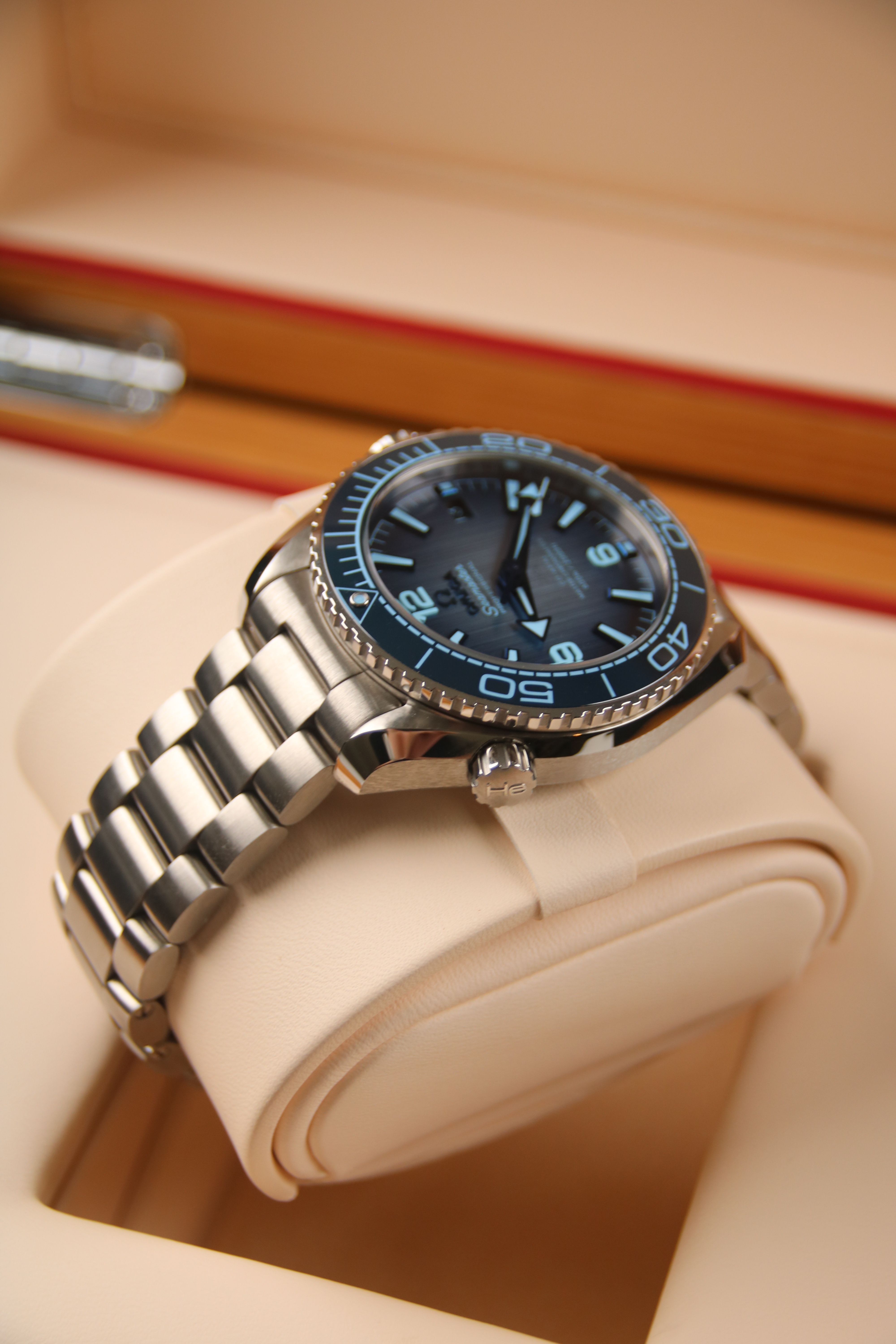 Te koop is een gloednieuwe Omega Seamaster Planet Ocean 600M Co-Axial Master Chronometer 40mm met prachtige blauwe wijzerplaat. Het horloge wordt geleverd als een volledige set, gekocht bij de erkende detailhandelaar in juni 2025.