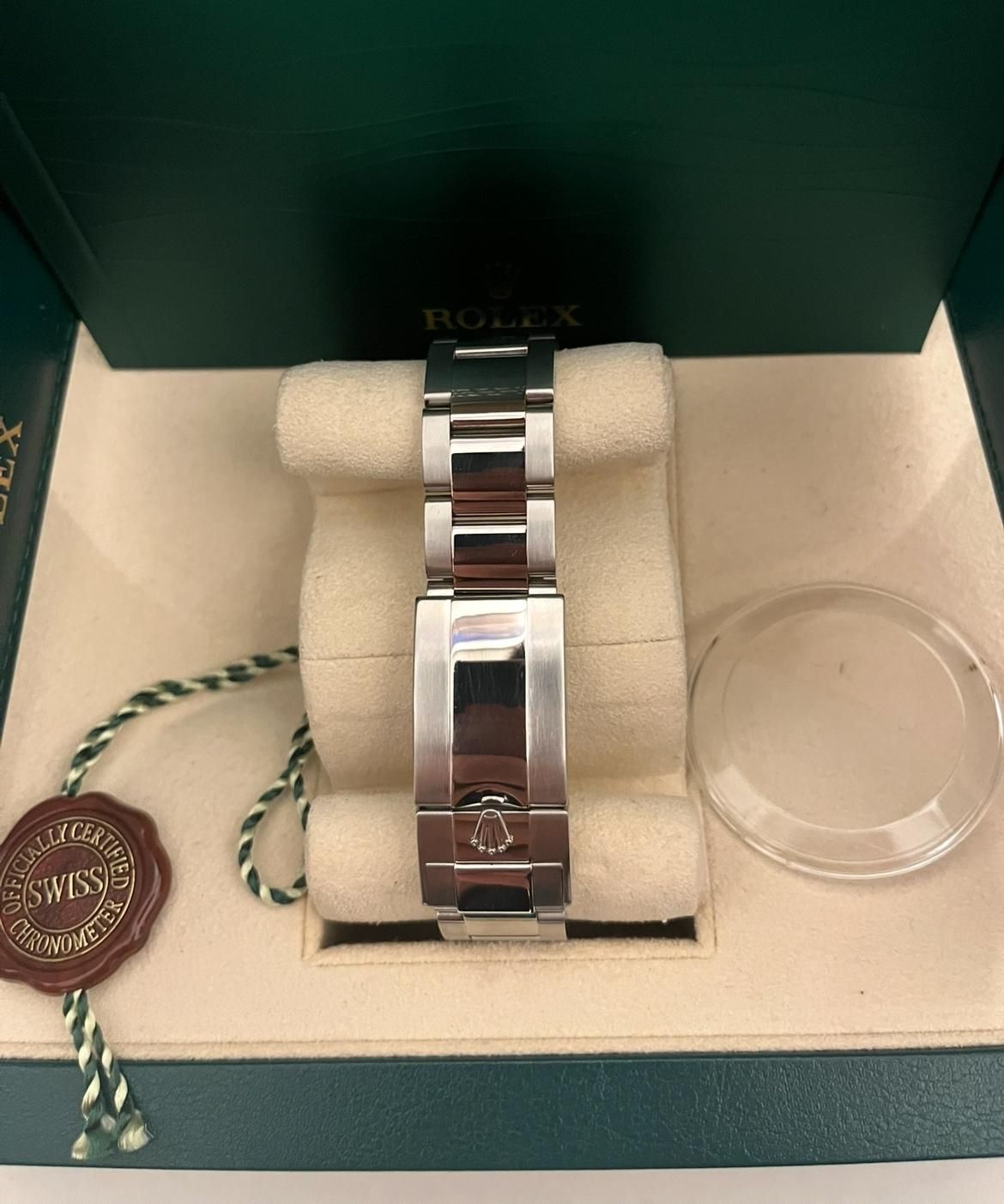 Dit luxe en sportieve model heeft een platina lunette en een Oyster band, waardoor het een gedurfde en stijlvolle uitstraling heeft. Het horloge is in uitstekende staat en wordt geleverd als complete set, zoals oorspronkelijk geleverd door Rolex.