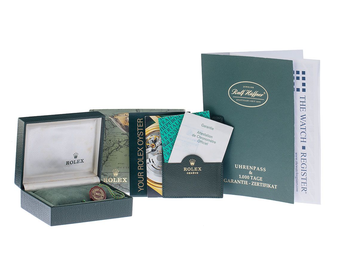 Inklusive certified pre owned Zertifikat / Uhrenpass mit einem Farbbild, der genauen Beschreibung sowie dem Wiederbeschaffungswert der Uhr über 10500,-€ und 1000 Tage Garantie ab Kaufdatum.