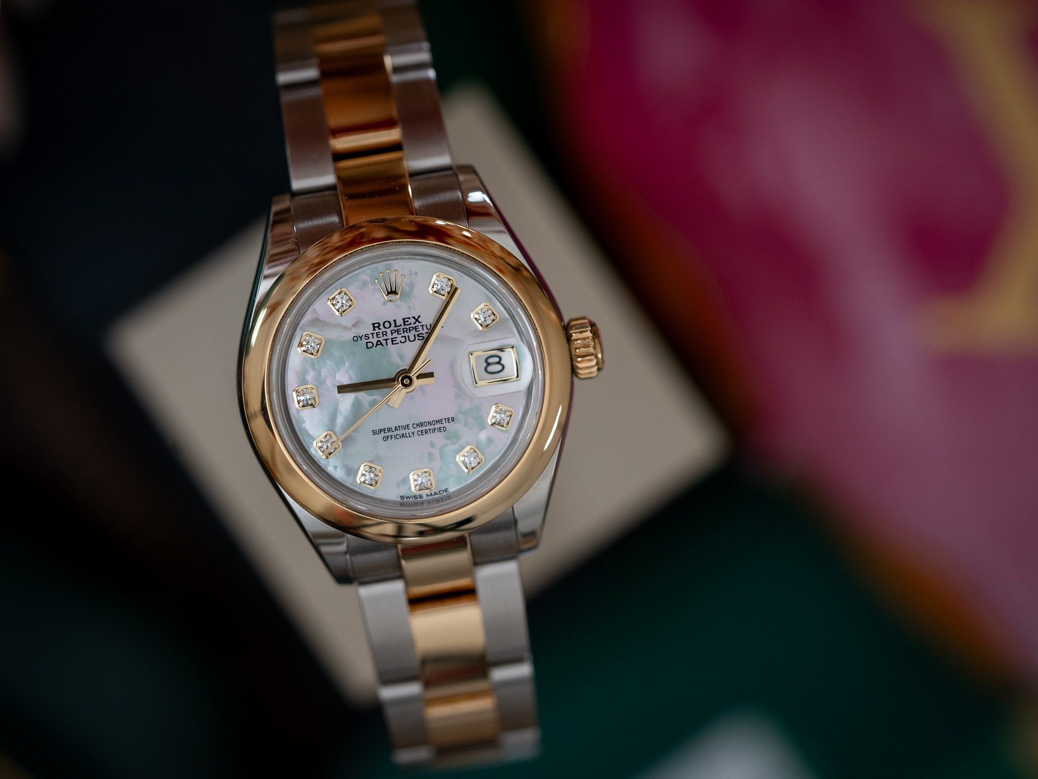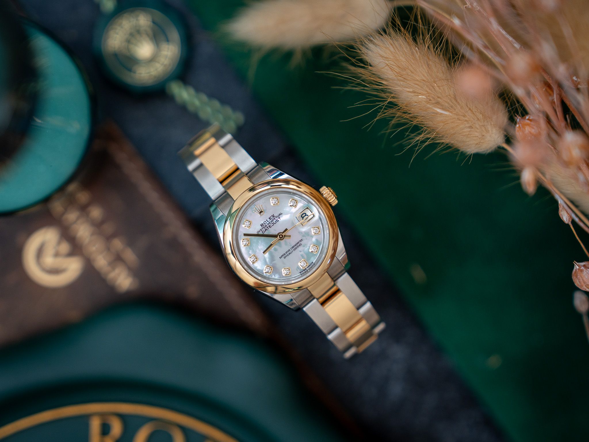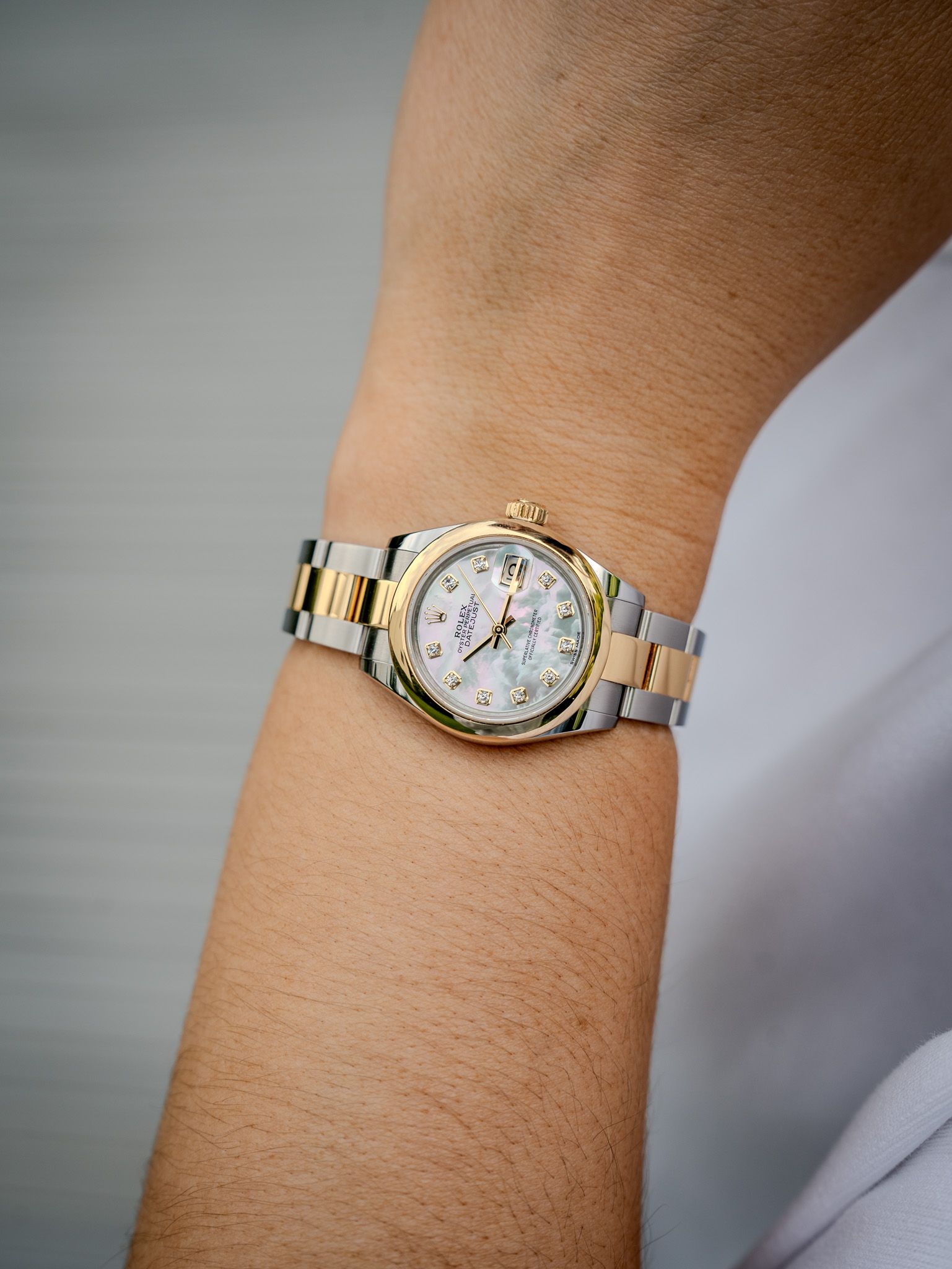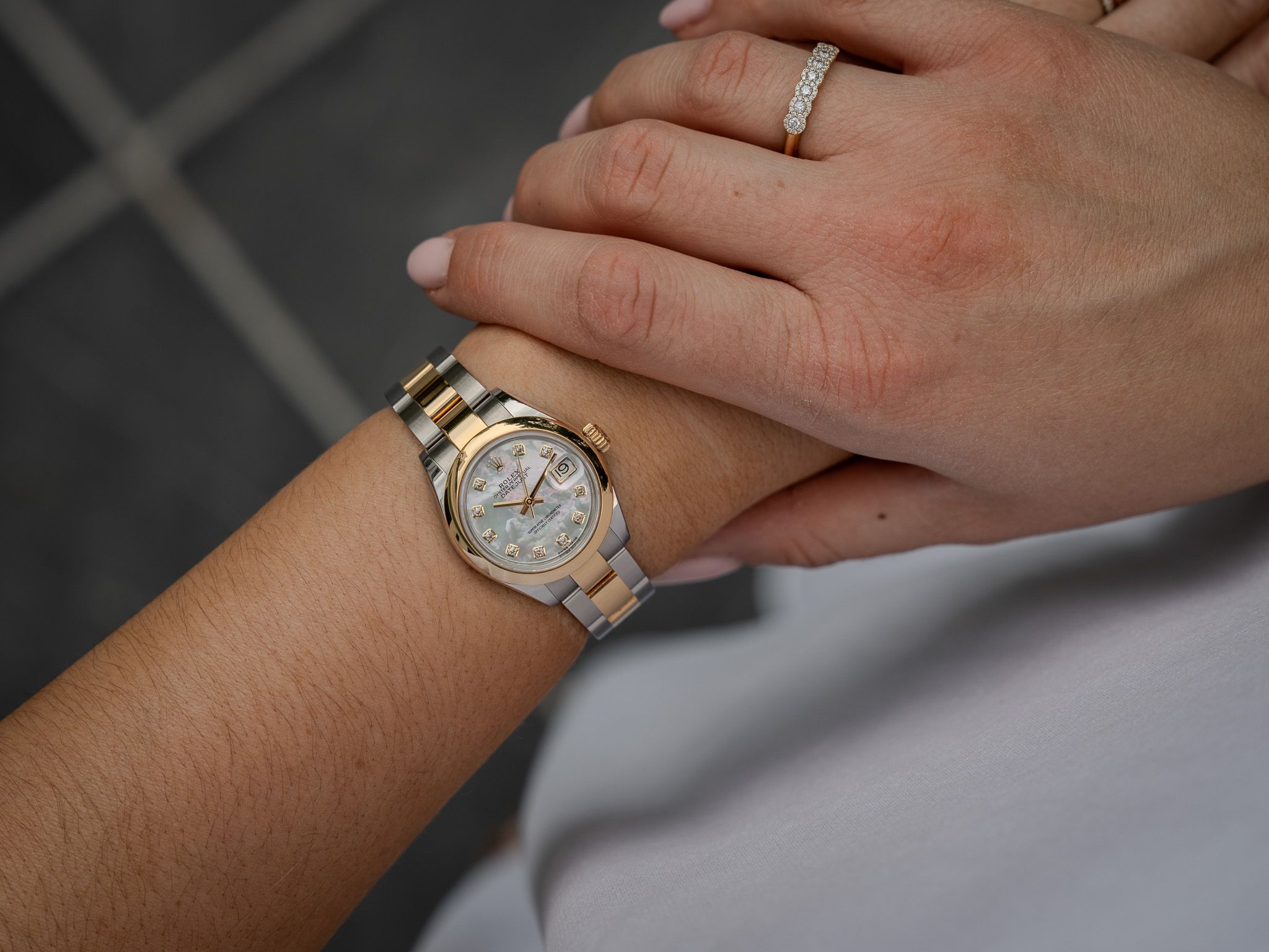 Several wrist shots are included to show how well this model wears. It is very refined watch with subtle sparkle from the diamonds and mother of pearl dial which makes it a versatile choice for any occasion.