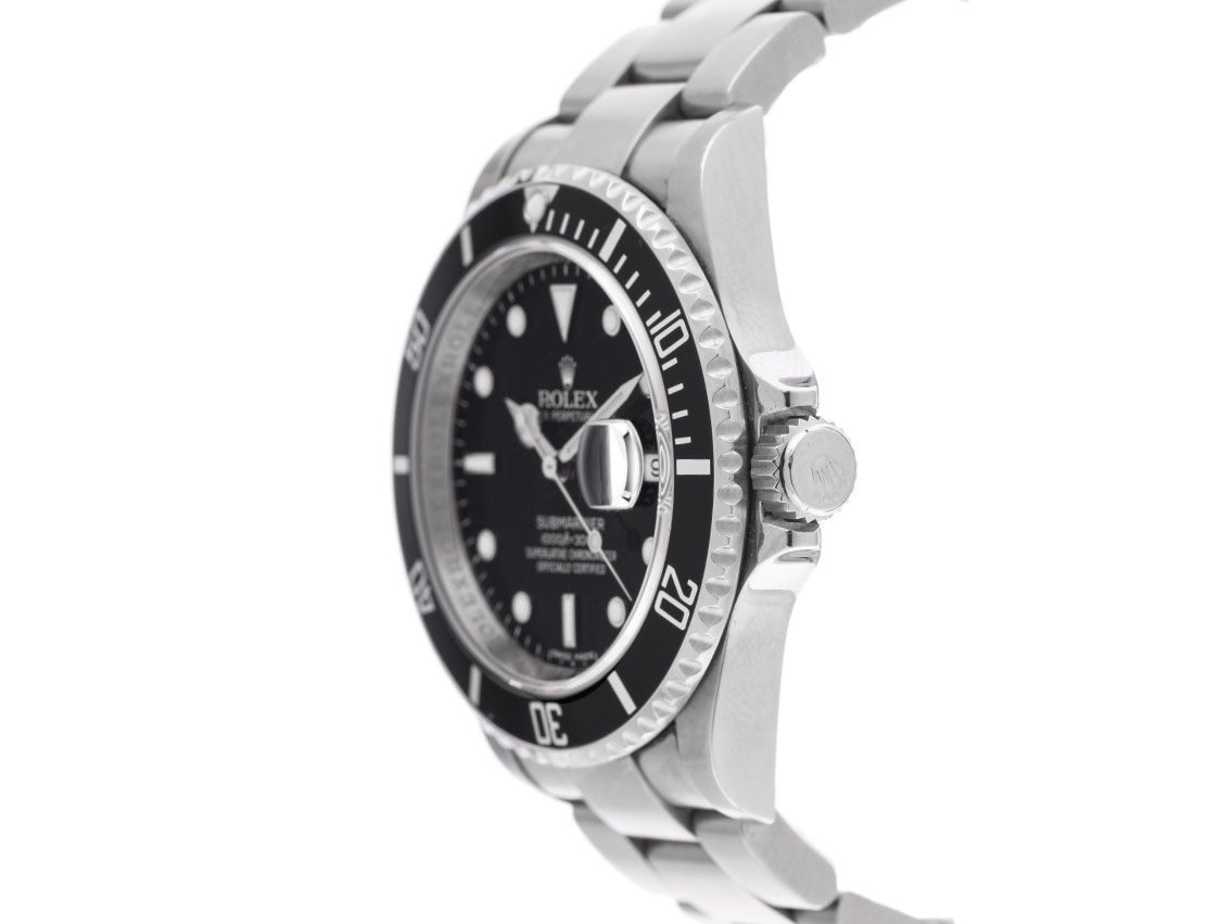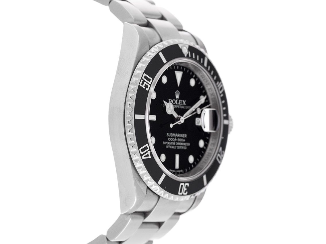 Gehäuse Edelstahl poliert und satiniert, Gehäusedurchmesser ohne Krone 40mm, Gehäusehöhe 12,7mm. Lünette Edelstahl gerädelt mit schwarzem Inlay und 60-Minuten Skala, einseitig drehbar. Armband Oyster Edelstahl satiniert, Sicherheitsfaltschließe Edelstahl mit Hersteller-Logo. Zifferblatt schwarz mit aufgesetzten weißgoldenen Indexen und weißgoldenen Zeigern, "SWISS Made" Aufschrift bei 6 Uhr. Uhrwerk Automatik, Chronometer, Rolex Manufakturkaliber 3135 met 31 Edelsteinen. Anzeige von Stunde, Minute und Sekunde über Zeiger aus der Mitte mit Sekundenstopp zur sekundengenauen Einstellung der Uhrzeit, Datumsanzeige mit Schnellverstellung unter Glaslupe bei 3 Uhr. Saphirglas kratzfest. Krone verschraubbar mit Flankenschutz und Hersteller-Logo. Boden Edelstahl verschraubt. Gewicht der Uhr inklusive Armband 136g, Länge des Armbandes inklusive Gehäuse 190mm. Referentienummer: 16610, Gehäusenummer: G004XXX, ID: KV1539180000725H-12800, Artikelnummer: 10000081362. Met gangcontrole van juli 2025. Originele Rolex Box mit Umkarton und Garantie Papiere von April 2010, LC 160 / GB EU, sowie Beschreibung, Ledermäppchen, Tag und Rolex Chronometer-Siegel sowie Watchregister Auszug von Juli 2025, The Watch Register Zertifikat / ohne Eintrag (Internationale Datenbank für verlorene oder gestohlene Uhren), Full Set. Superschnäppchen, Kapitalanlage mit Wertsteigerungspotential, sehr seltenes Sammlerstück. Wie Neu, bijna NOS "new old stock". Lieferzeit sofort.