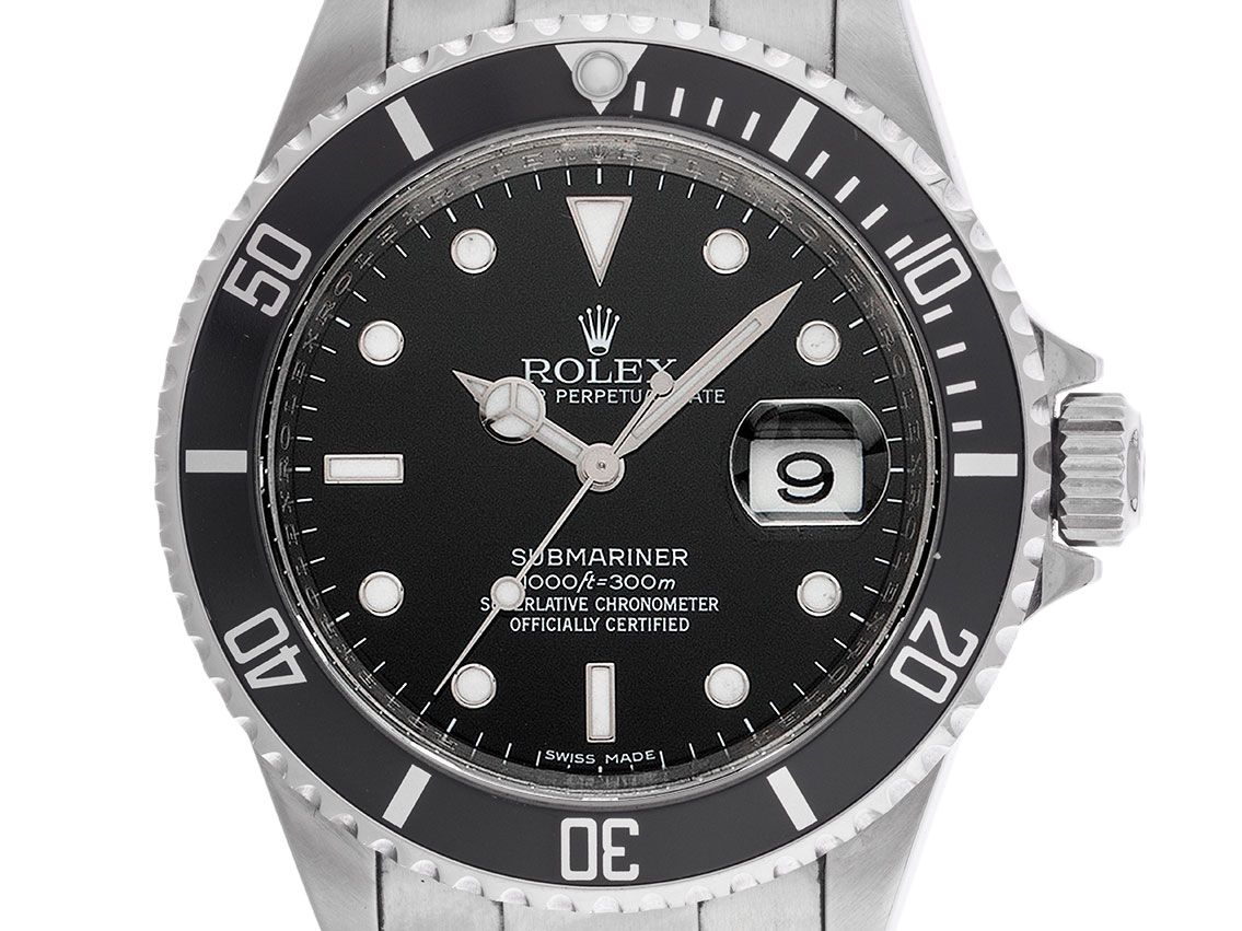 Rolex Submariner Date Stahl Automatik Armband OysterGehäuse Edelstahl poliert und satiniert, Gehäusedurchmesser ohne Krone 40mm, Gehäusehöhe 12,7mm. Lünette Edelstahl gerädelt mit schwarzem Inlay und 60-Minuten Skala, einseitig drehbar. Armband Oyster Edelstahl satiniert, Sicherheitsfaltschließe Edelstahl mit Hersteller-Logo. Zifferblatt schwarz mit aufgesetzten weißgoldenen Indexen und weißgoldenen Zeigern, "SWISS Made" Aufschrift bei 6 Uhr. Uhrwerk Automatik, Chronometer, Rolex Manufakturkaliber 3135 mit 31 Edelsteinen. Anzeige von Stunde, Minute und Sekunde über Zeiger aus der Mitte mit Sekundenstopp zur sekundengenauen Einstellung der Uhrzeit, Datumsanzeige mit Schnellverstellung unter Glaslupe bei 3 Uhr. Saphirglas kratzfest. Krone verschraubbar mit Flankenschutz und Hersteller-Logo. Boden Edelstahl verschraubt. Gewicht der Uhr inklusive Armband 136g, Länge des Armbandes inklusive Gehäuse 190mm. Referenznummer: 16610, Gehäusenummer: G004XXX, ID: KV1539180000725H-12800, Artikelnummer: 10000081362. Mit Gangkontrolle von Juli 2025. Original Rolex Box mit Umkarton und Garantie Papiere von April 2010, LC 160 / GB EU, sowie Beschreibung, Ledermäppchen, Tag und Rolex Chronometer-Siegel sowie Watchregister Auszug von Juli 2025, The Watch Register Zertifikat / ohne Eintrag (Internationale Datenbank für verlorene oder gestohlene Uhren), Full Set. Superschnäppchen, Kapitalanlage mit Wertsteigerungspotential, sehr seltenes Sammlerstück. Wie Neu, near NOS "new old stock". Lieferzeit sofort.