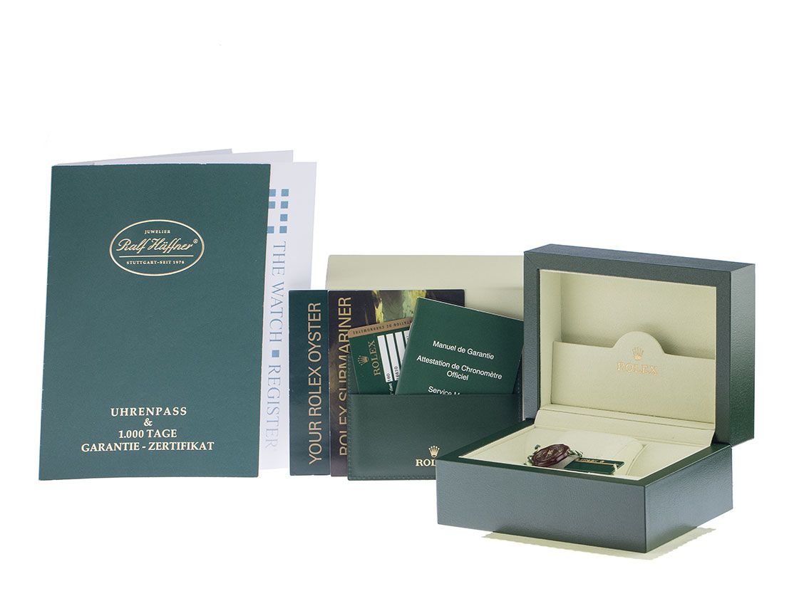 Inklusive certified pre owned Zertifikat / Uhrenpass mit einem Farbbild, der genauen Beschreibung sowie dem Wiederbeschaffungswert der Uhr über 12800,-€ und 1000 Tage Garantie ab Kaufdatum.