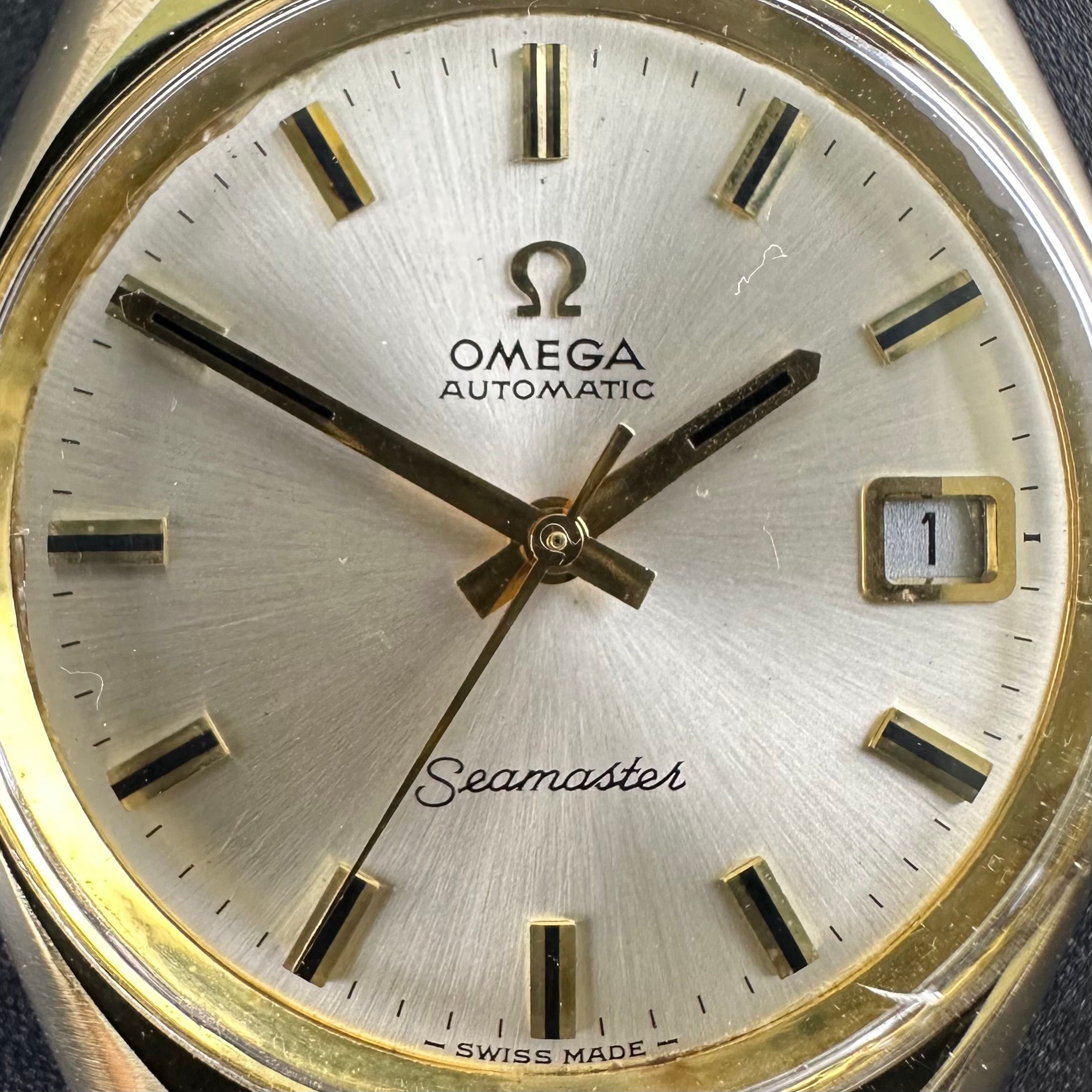 This vintage Omega Seamaster, produced in 1969, features a white sunburst dial in great condition. The 36mm gold-plated case is also in very good shape. Inside is a Caliber 565 automatic movement, recently serviced in August 2025, running and functioning excellently. It comes fitted with a new black grade 3 calf leather strap, featuring a crocodile grain and light glossy finish. Apart from the strap, the watch is fully original and overall in great condition.Year of production: 1969