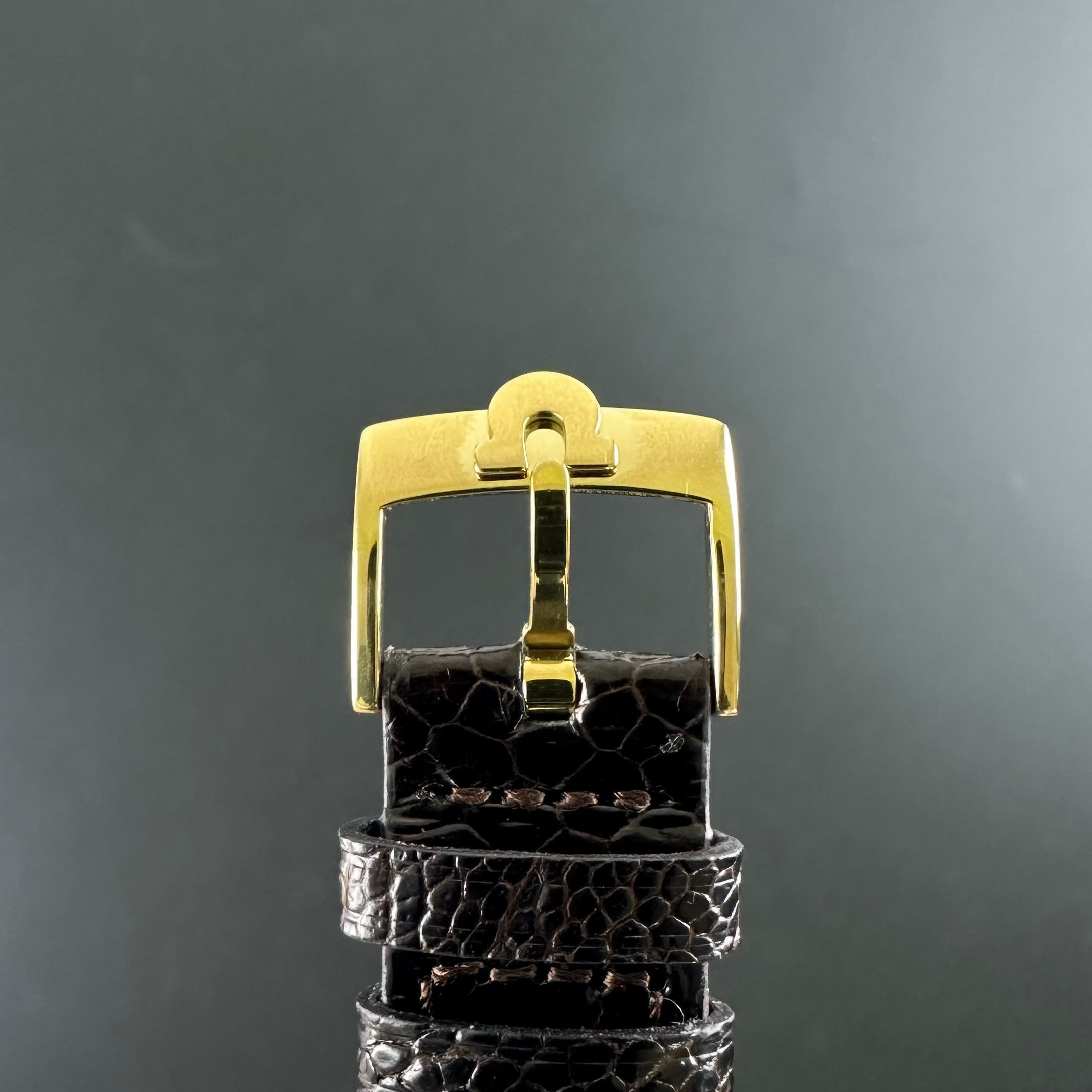 Strap: A grade III Brown calf leather strap with crocodile grain and light glossy finish.