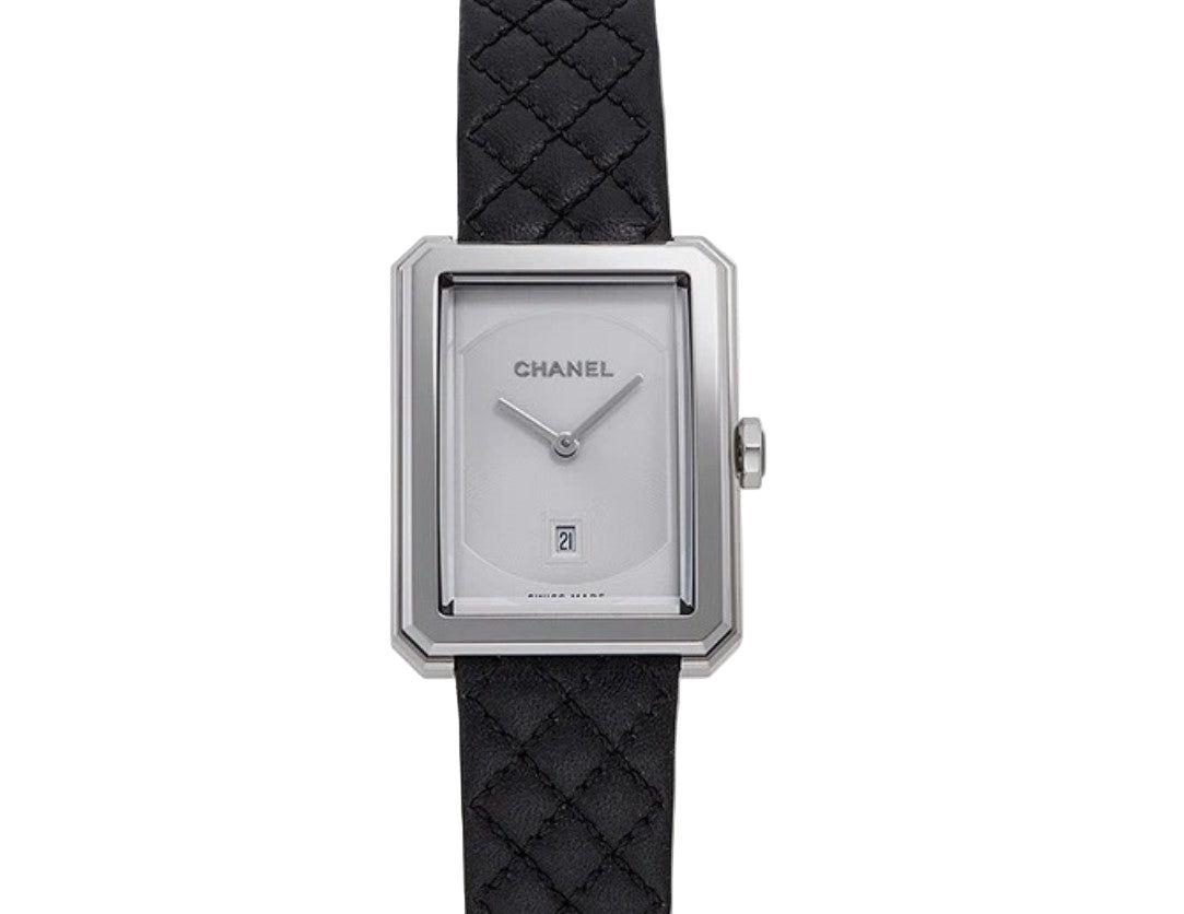Chanel BOY·FRIEND Uhr Mittelgroßes Modell, Edelstahl, Kalbslederarmband mit Steppmuster. Inklusive zweites Armband. H6954