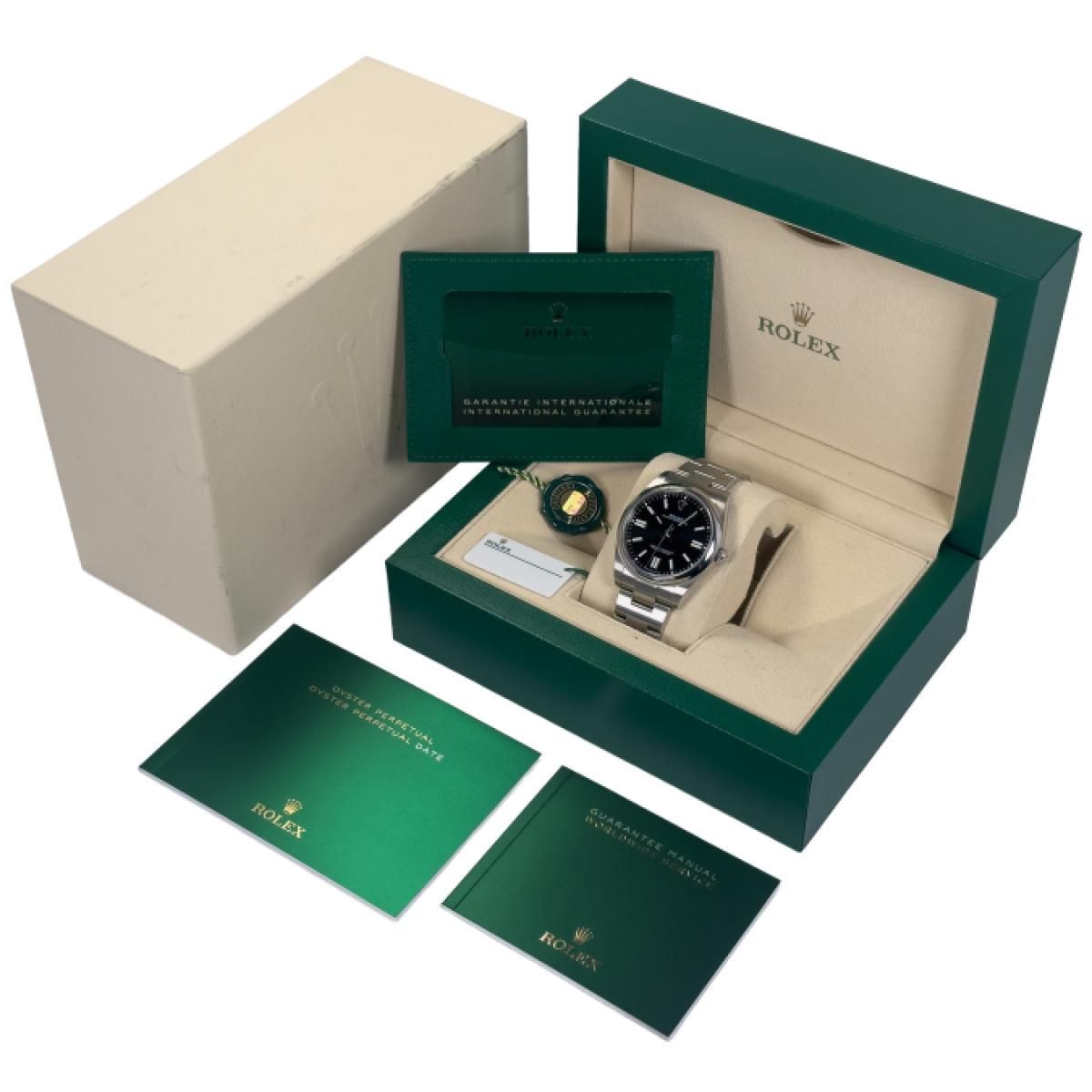 Rolex Oyster Perpetual 41 uit 2024 met een 41 mm roestvrijstalen kast en vouwsluiting. Dit heren Rolex horloge is in zeer goede staat.