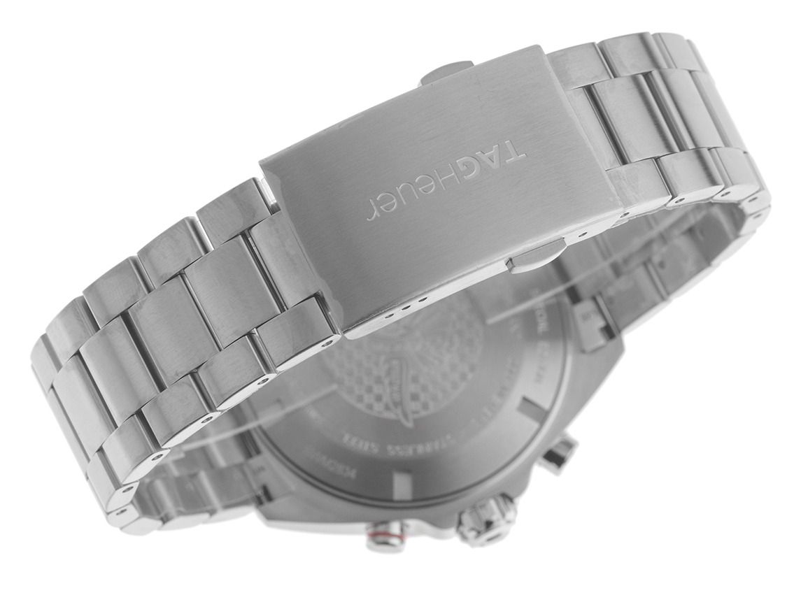 Gehäuse Edelstahl poliert und satiniert, Gehäusedurchmesser ohne Krone 43mm, Gehäusehöhe 12,6mm. Lünette Edelstahl met zilverkleurige inlay en gravierter Indy 500. Armband Edelstahl poliert und satiniert, Sicherheitsfaltschließe Edelstahl mit Hersteller-Logo. Zifferblatt schwarz granuliert mit arabischen Ziffern und Leuchtzeigern. Uhrwerk quarzgesteuert, chronograaf, kaliber Tag Heuer. Anzeige von Stunde und Minute über Zeiger aus der Mitte, kleine Sekunde mit Sekundenstopp zur sekundengenauen Einstellung der Uhrzeit zwischen 2 und 3 Uhr, Datumsanzeige mit Schnellverstellung bei 4 Uhr. Saphirglas kratzfest. Krone verschraubbar mit Flankenschutz und Hersteller-Logo. Boden Edelstahl verschraubt und graviert. Gewicht van de armband 183g, lengte van de armband 200mm. Waterdicht tot 20 ATM. Referentienummer: CAZ101AW.BA0842, ID: ST116032240825H-2600, Artikelnummer: 10000081845. Originele Tag Heuer Box mit Umkarton und Garantie Papiere von Juli 2025 sowie Beschreibung, Complete Set. Special Edition Hommage an die gefährlichste Rennstrecke der Welt. Ongetroffen. Lieferzeit sofort.