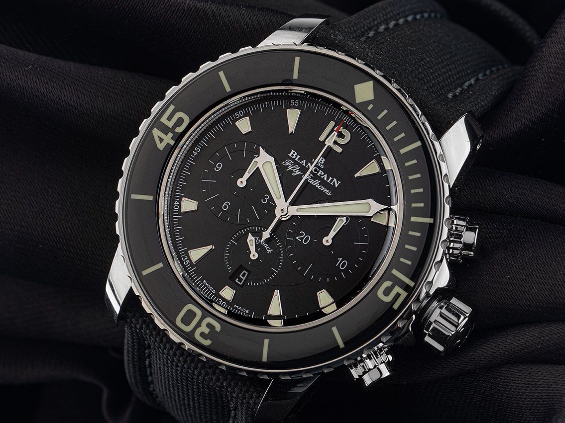 Blancpain Fifty Fathoms Chronographe Flyback Stahl Automatik Armband Segeltuch