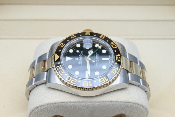 Rolex GMT-Master 116713LN uit 2015 in uitstekende staat, wordt compleet geleverd met de volledige set.Al onze horloges zijn grondig gecontroleerd door onze eigen horlogemaker en onderhouden wanneer nodig.